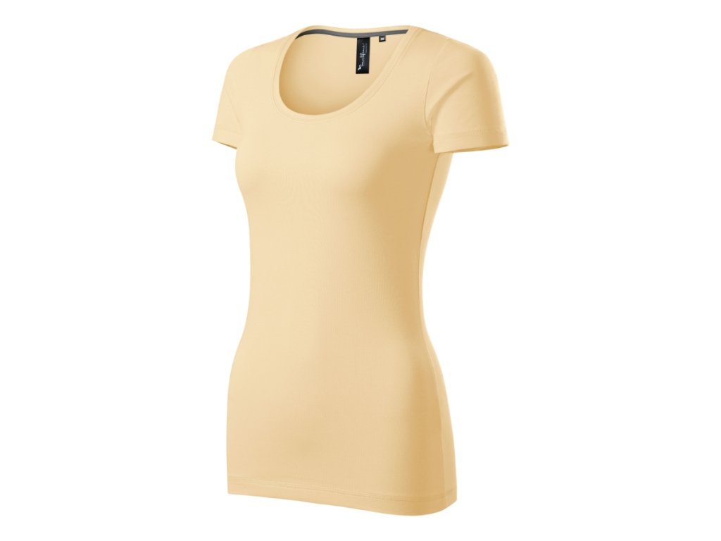 strečový materiál udržující stálost tvaru, přiléhavý střih s bočními švy, hlubší kulatý výstřih, úzký lem průkrčníku z žebrového úpletu 1:1 s 5 % elastanu, vnitřní část průkrčníku začištěna kontrastní páskou, zpevnění ramenních švů páskou, krátké přiléhavé rukávy, dekorativní prošití