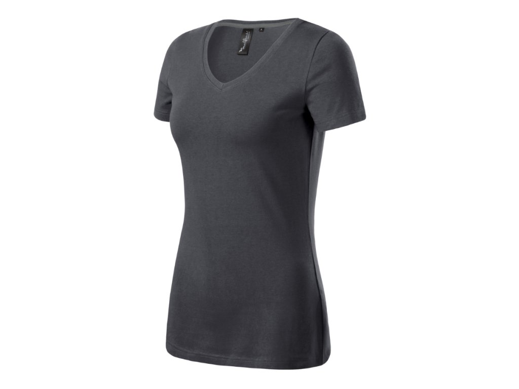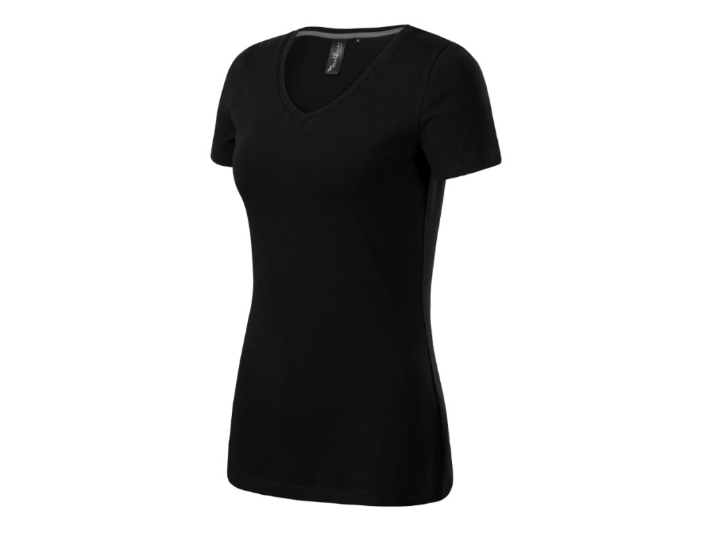 strečový materiál udržující stálost tvaru, přiléhavý střih s bočními švy, hlubší výstřih ve tvaru V, úzký lem průkrčníku z žebrového úpletu 1:1 s 5 % elastanu, vnitřní část průkrčníku začištěna kontrastní páskou, zpevnění ramenních švů páskou, krátké přiléhavé rukávy