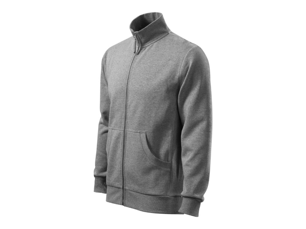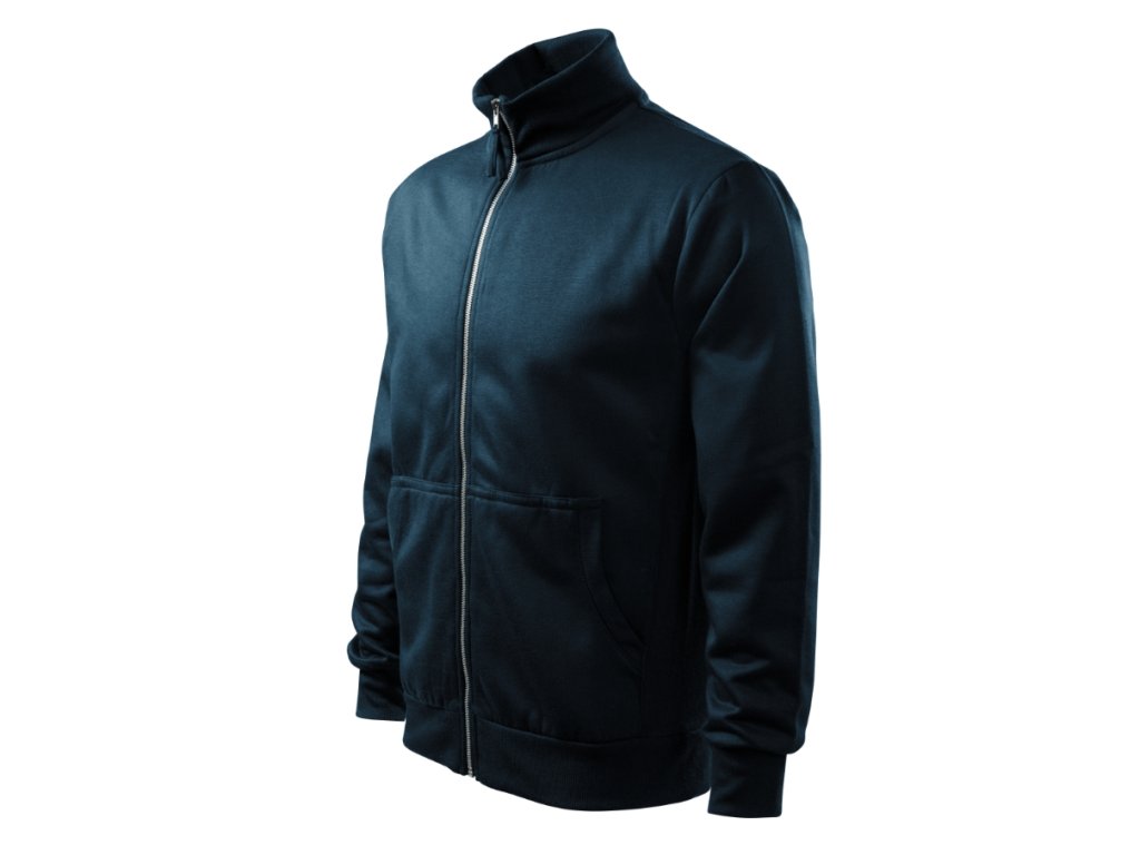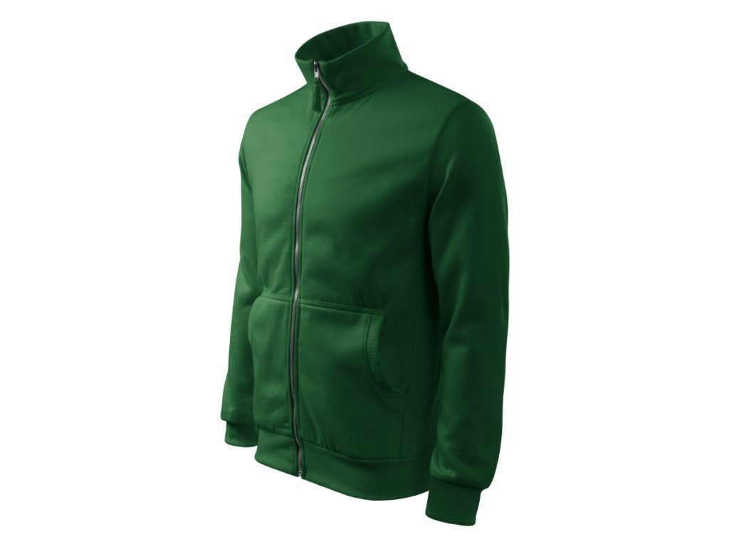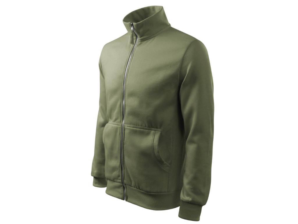 rovný střih s bočními díly, celopropínací kovový zip, stojáček a boční díly z žebrového úpletu 2:2 s 5 % elastanu, vnitřní průkrčník začištěn kontrastní páskou, nakládané kapsy ve stylu klokanky, dolní lem, manžety a lemy kapes z žebrového úpletu 2:2 s 5 % elastanu, vnitřní strana počesaná