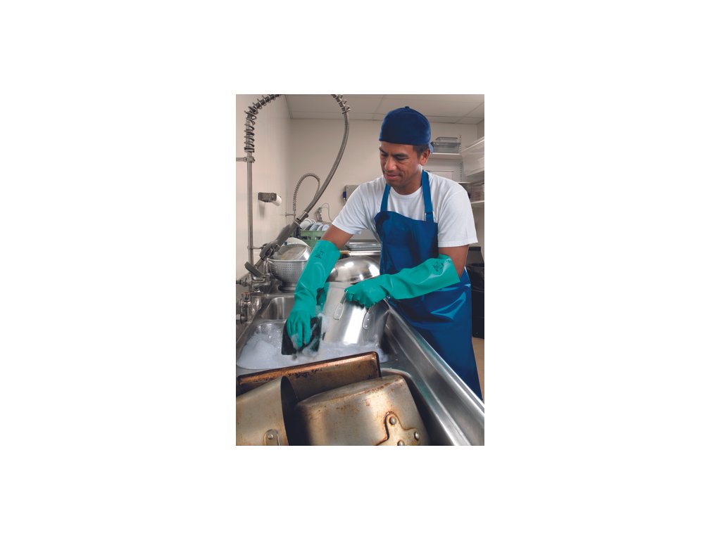 • zelené antistatické rukavice z 0,56 mm silného nitrilu • s reliéfním povrchem v dlani a na prstech • v celkové délce 45,5 cm