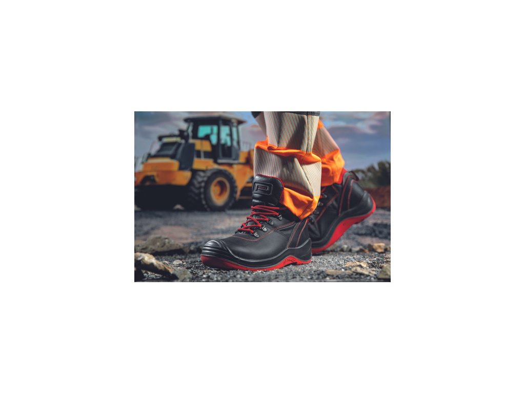 Kvalitní bezpečnostní obuv pro asfaltéry. Vyrobená dle požadavků asfaltérů - minimalistický dezén podešve pro maximální styčnou plochu, který předchází poškození nově uloženého povrchu. Materiál podešve PU/pryž zajistí nepřilnavost materiálů s vysokou teplotou (HRO) až do 300 °C. Kompozitní bezpečnostní tužinka a stélka proti propichu. Odolný svršek z lícové hovězinové usně.