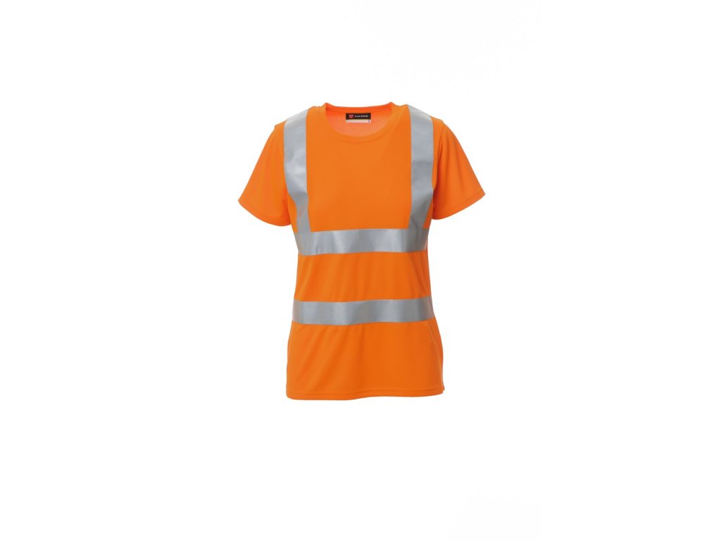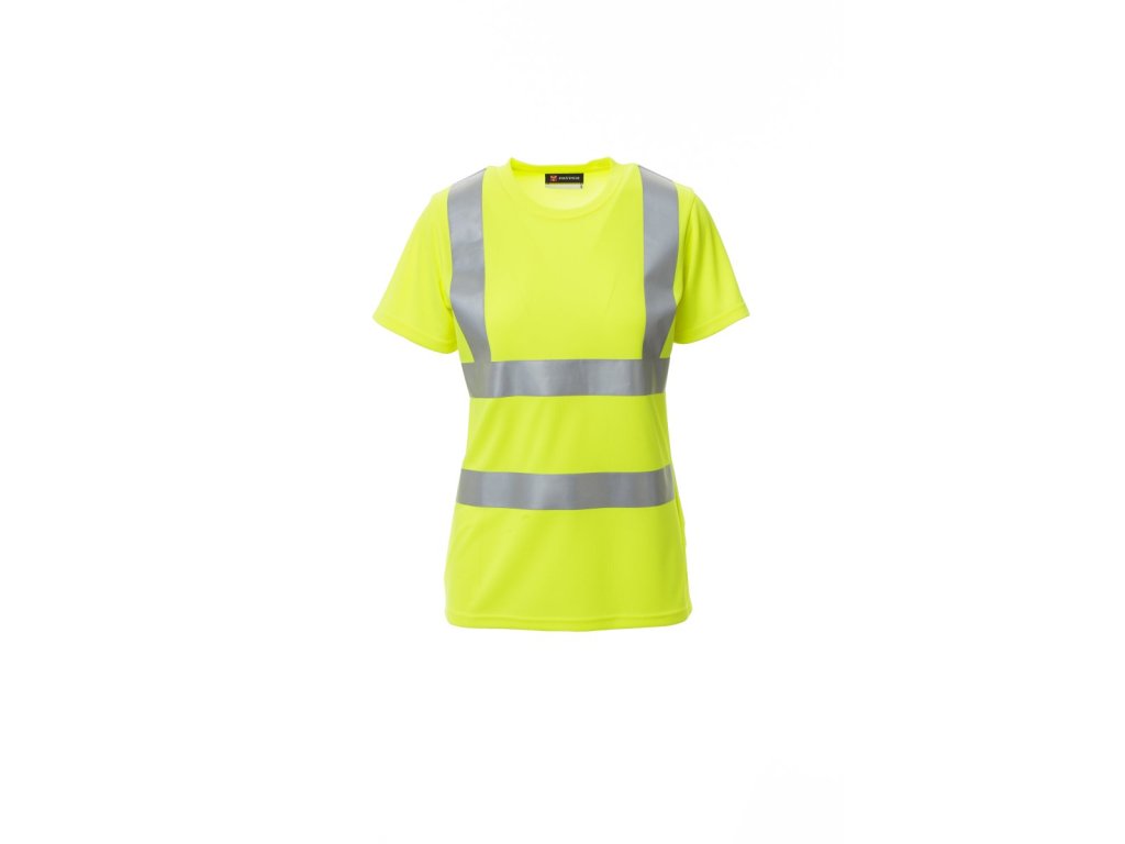 Dámské tričko s kulatým výstřihem s krátkým rukávem, s reflexními pruhy, skryté švy na límečku.
