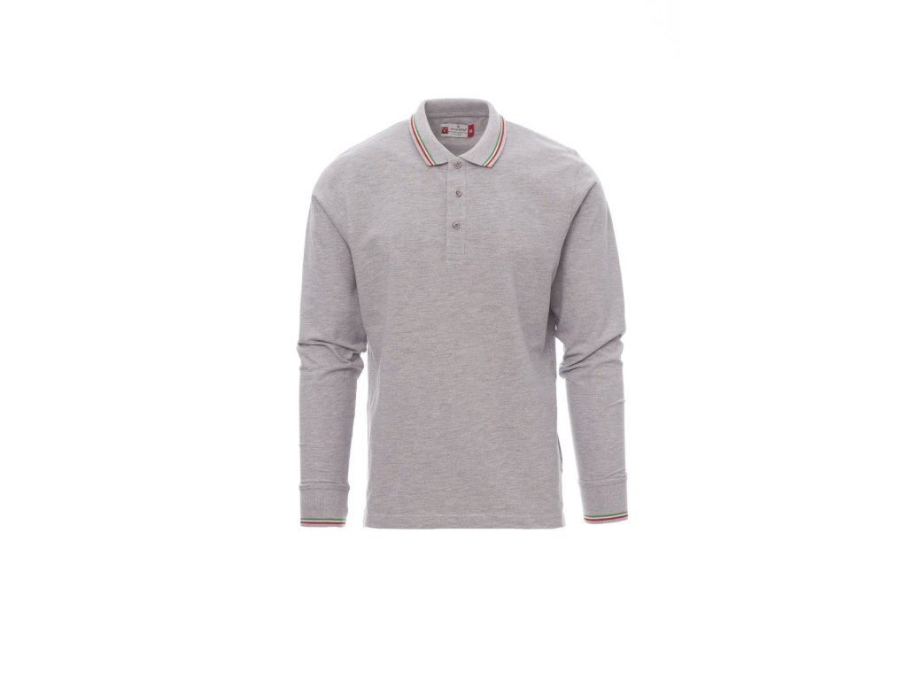 Unisexová polokošile s dlouhým rukávem s 3 sladěnými knoflíky, kontrastní lemování u krku a na rukávech v barvě italské trikolóry, žebrovaný límeček a manžety, postranní rozparky, zakryté prošití límečku, postranní vyztužovací páska, tvarovaná výztuž na spodní straně límečku.