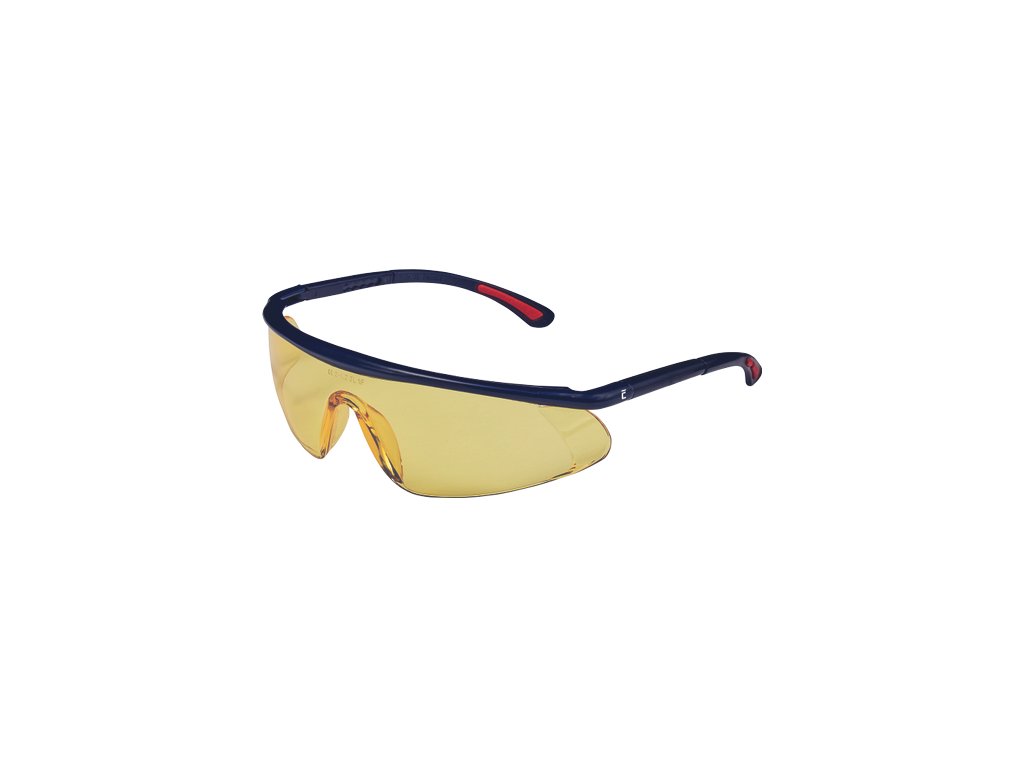 brýle sportovního designu s polykarbonátovým zorníkem třídy 1F dle normy EN 166; zorník s ochranou proti poškrábání a zamlžení; ochrana proti letícím částicím s nízkou energií; nastavitelná délka stranic; žlutý zorník s ochranným filtrem proti UV záření dle normy EN 170; kouřový zorník s protislunečním filtrem dle normy EN 172.