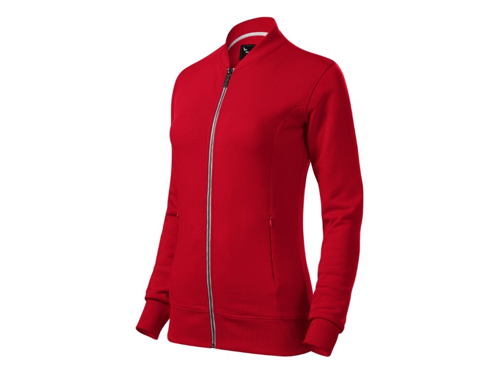 střih tvarovaný bočními díly, celopropínací kovový zip, táhlo zipu s gravírovaným logem, límec ve stylu “bomber” z žebrového úpletu 2:2 s 5 % elastanu, vnitřní část průkrčníku začištěna páskou, kapsy v členících švech se skrytým zipem, dolní lem a manžety rukávů z žebrového úpletu 2:2 s 5 % elastanu, vnitřní strana nepočesaná