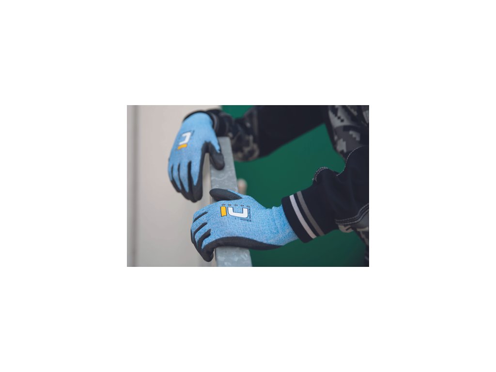 • pletené bezešvé rukavice kategorie prořezu B • PU na dlani a na prstech • pružná manžeta