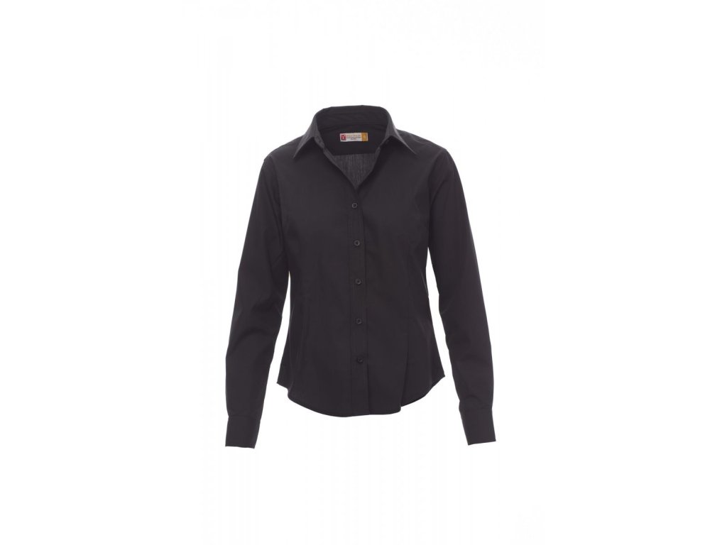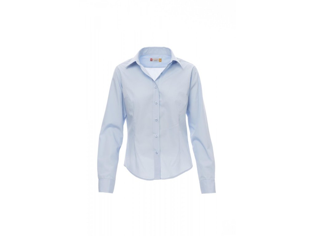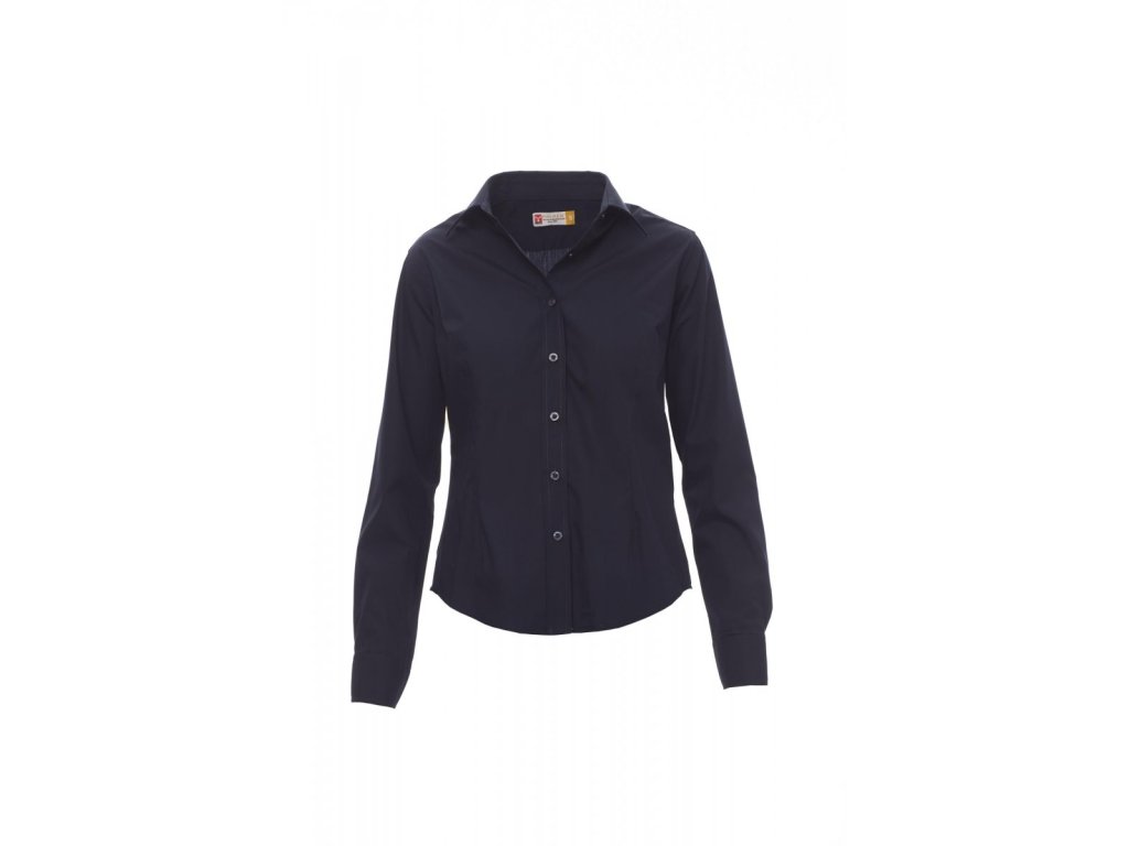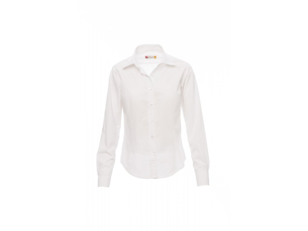 Dámská vyštíhlená košile s krátkým rukávem z jemné česané bavlněné látky, záševky vepředu i vzadu, italský límeček, tvarované manžety s 2 knoflíky a knoflíkovou dírkou, oboustranně prošitá léga s barevně sladěnými knoflíky. Zadní strana: hladké zádové sedlo. Ošetření látky easy care.