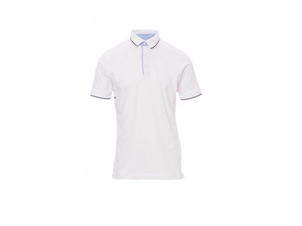 Pánská polokošile s krátkým rukávem s 3 bílými knoflíky, vnitřní strana límečku, klopa a postranní rozparky v oxfordské modré, žebrovaný lem u krku a na rukávech s jemně kontrastním lemováním, větrací očka v podpaží, postranní rozparky se zesílenými švy, postranní vyztužovací páska, pružné švy, tvarovaná výztuž na spodní straně límečku.