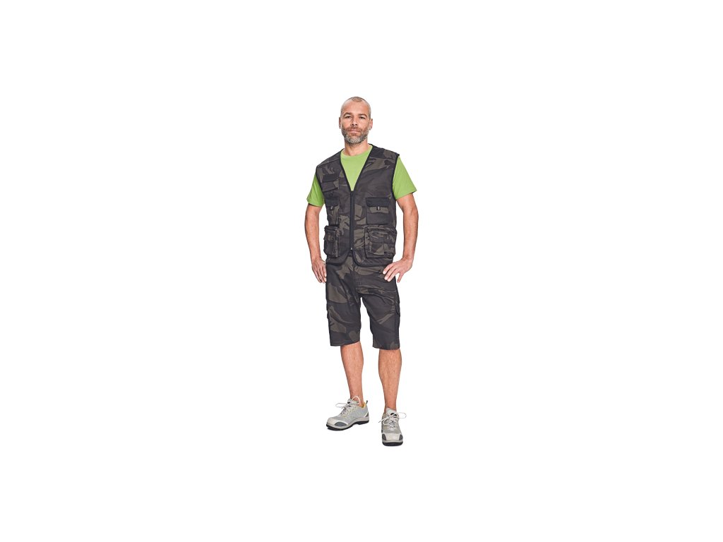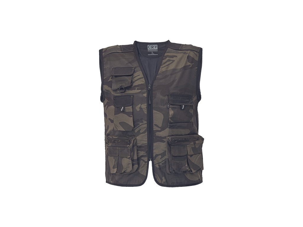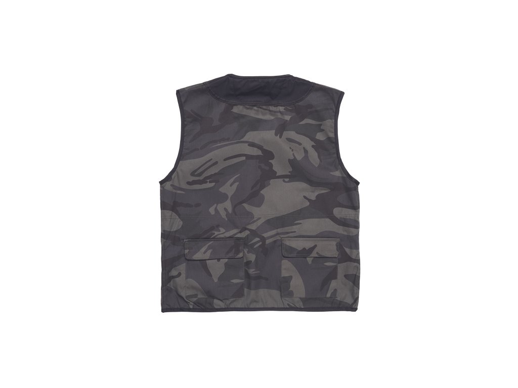 • pánská vesta z lehkého twillu v modních maskáčových barevných kombinacích • zapínání na zip • částečně podšita nylonovou síťovinou • 11 kapes z toho 2 vzadu na boku