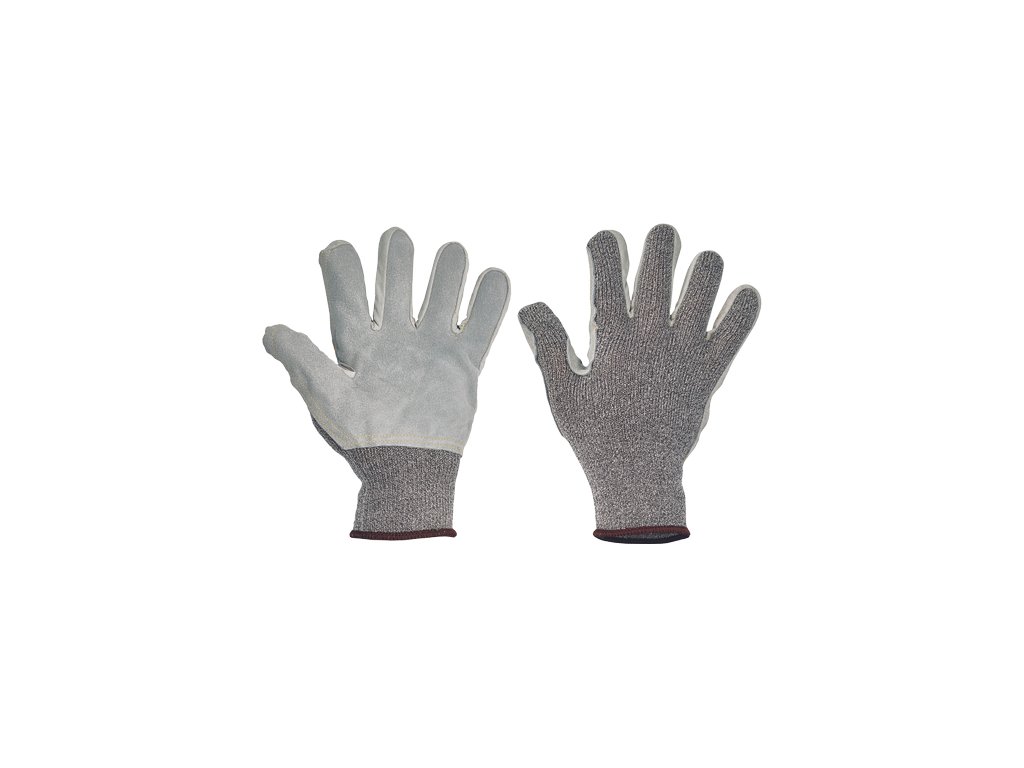 • pletené bezešvé rukavice z modifikovaného skleněného vlákna, Spandexu a nylonu • se zesílením z hovězí štípenky v dlani a na prstech • odolnost proti prořezu kategorie E