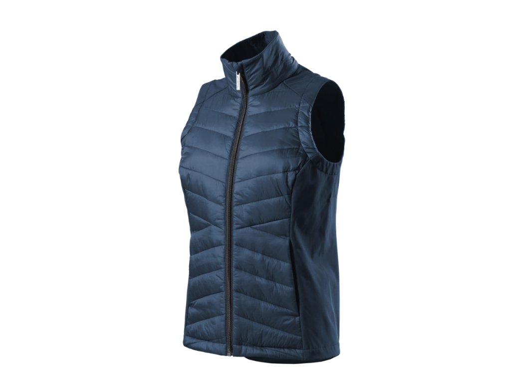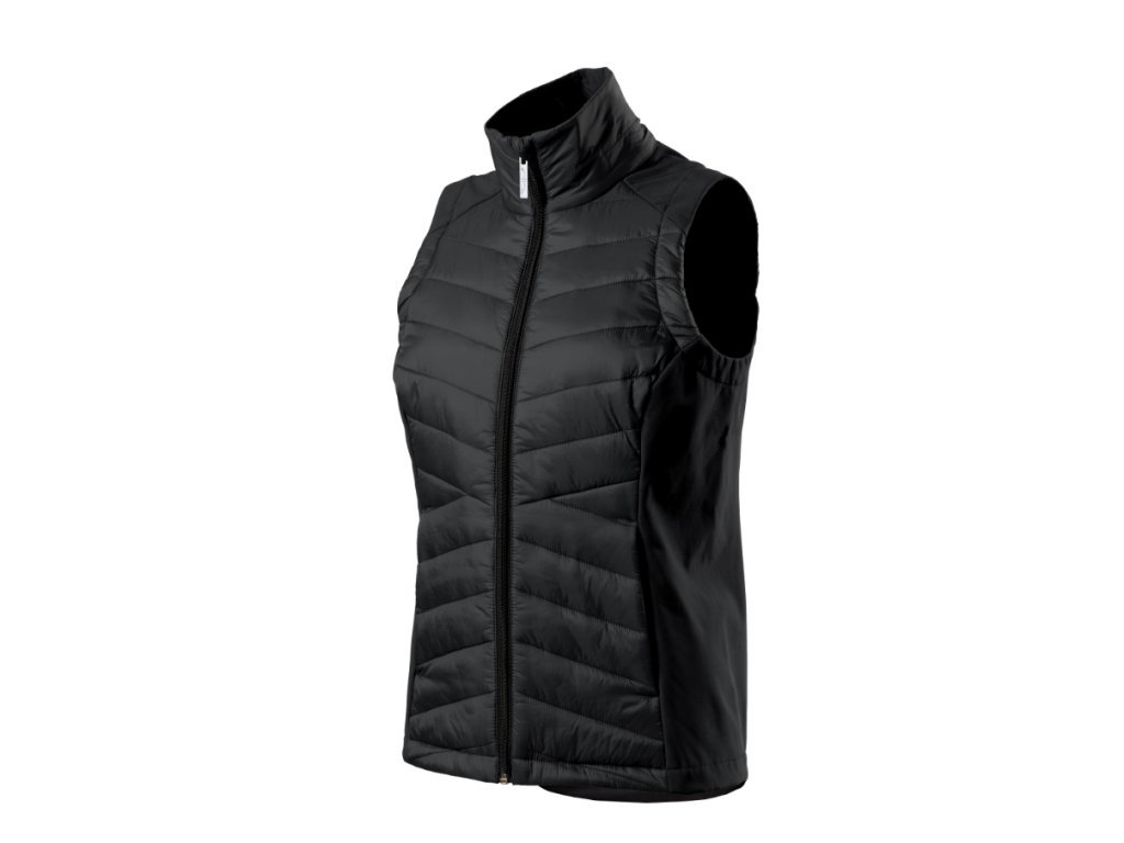 kombinace prošívaného a softshellového materiálu, střih tvarovaný bočními díly, celopropínací spirálový zip s krytkou brady, boční kapsy se spirálovým zipem, vnitřní náprsní kapsa na zip, tvarovaný a mírně prodloužený zadní díl , vstup pro branding v podšívce zadního dílu