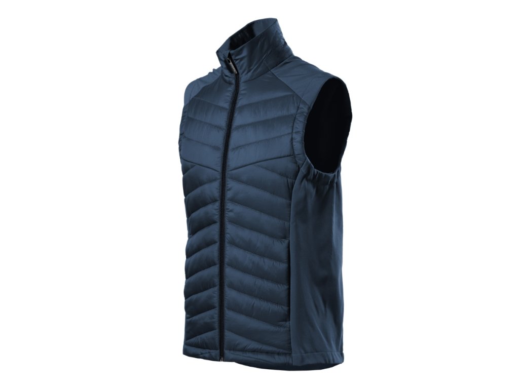 kombinace prošívaného a softshellového materiálu, rovný střih s bočními díly, celopropínací spirálový zip s krytkou brady, boční kapsy se spirálovým zipem, vnitřní náprsní kapsa na zip, tvarovaný a mírně prodloužený zadní díl , vstup pro branding v podšívce zadního dílu