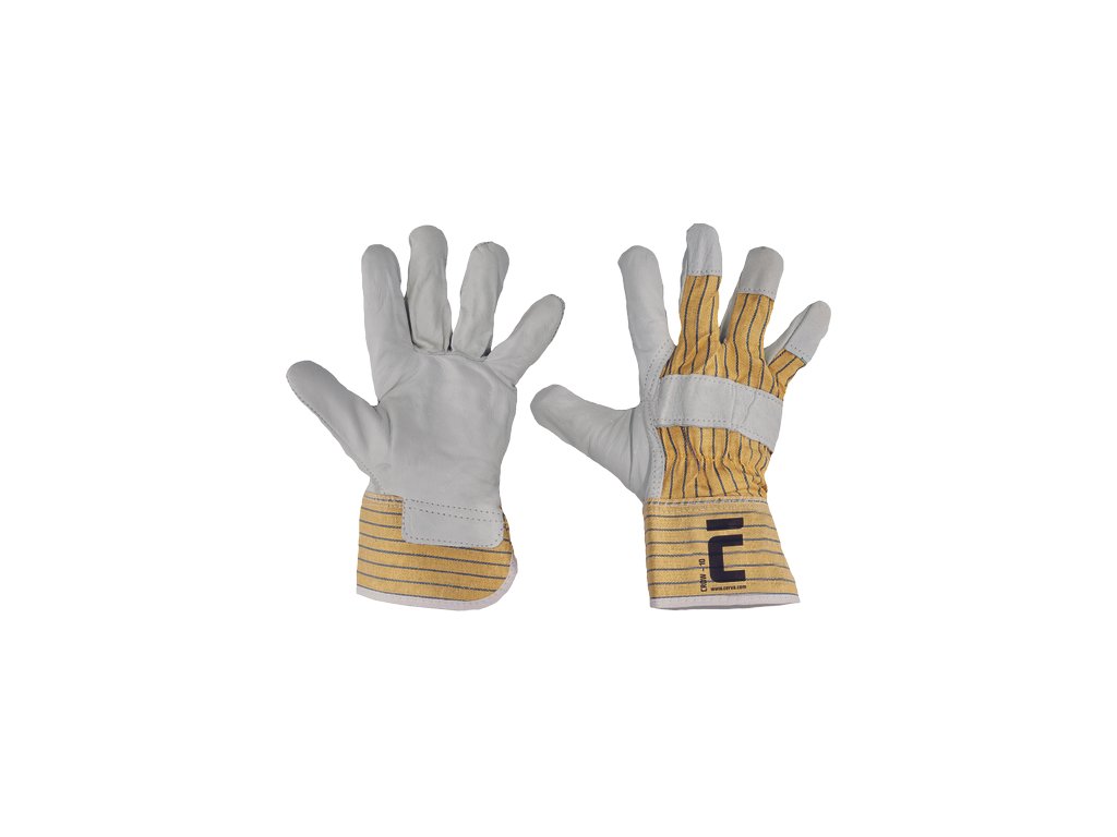 • rukavice z lícové hověziny v dlani • s podšívkou • bavlněná tkanina na hřbetu a manžetě