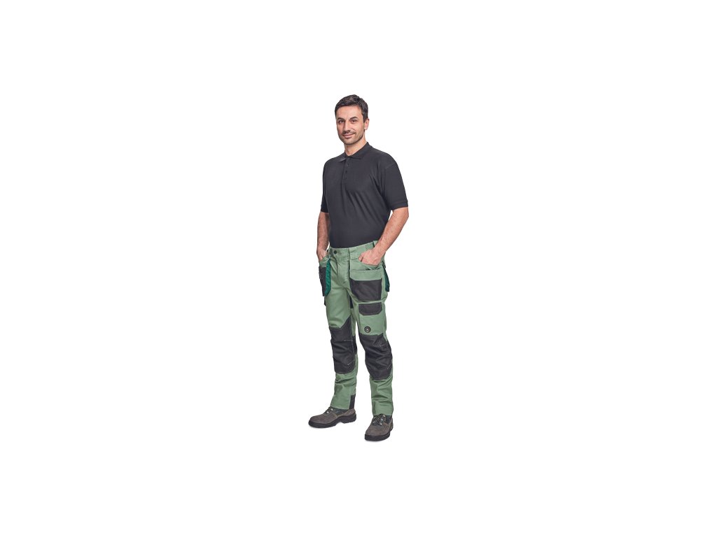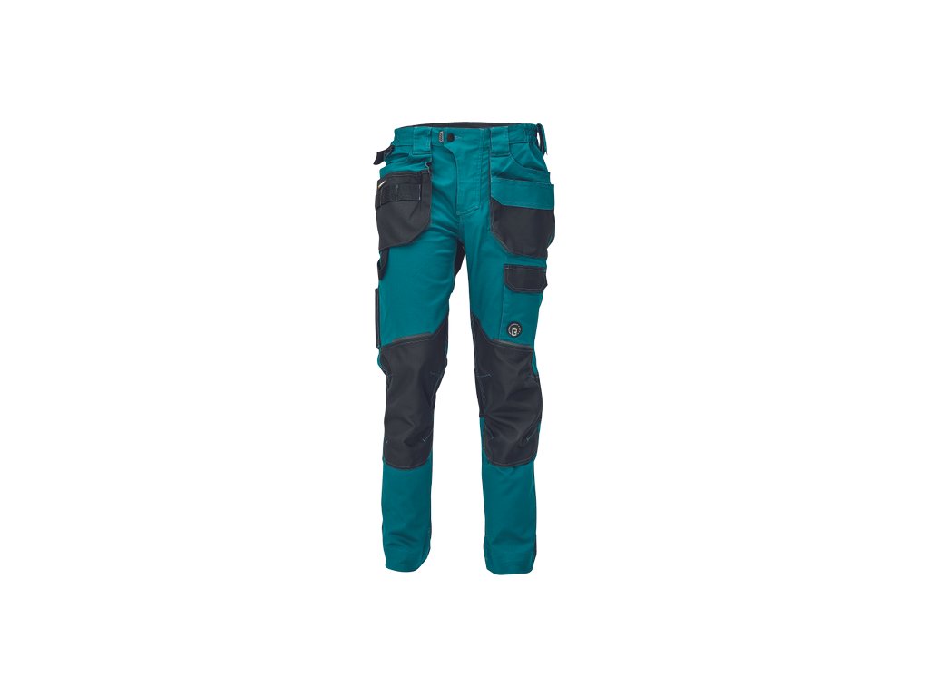 • pánské pracovní kalhoty s pružným pasem • elastický inovativní materiál TRIFIBETEX® • odolné trojité prošití nohavic a sedu • Oxford 600D zesílení v oblasti kolen s možností vkládání kolenních výztuh • prostorné multifunkční přední kapsy s poutky na nářadí • reflexní prvky v barevném odstínu • nastavitelná délka nohavic