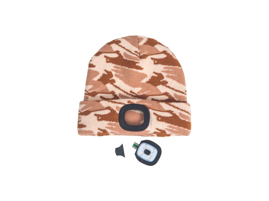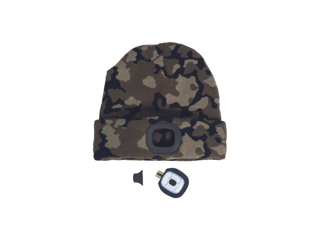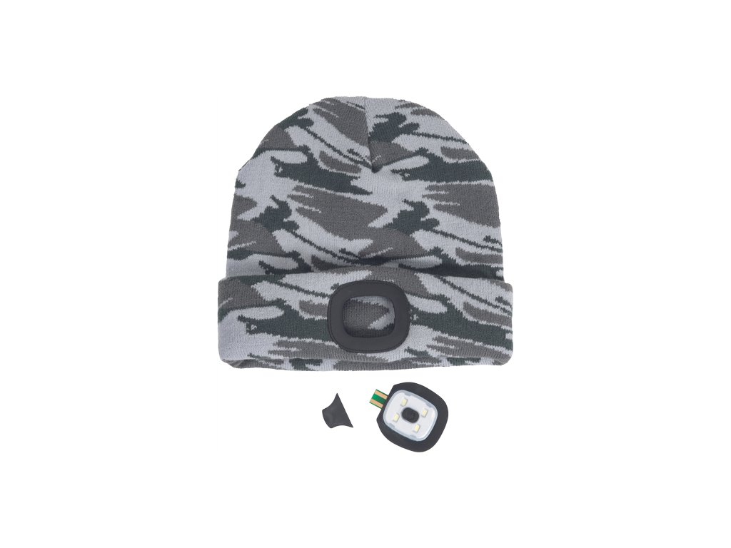 • pletená čepice s integrovanou LED lampou • 3 funkce svícení • svítivost 150 lm • LED lampu lze vyjmout a dobít přes USB konektor • nabíjecí výkon: 0,5W • nabíjecí napětí: 5V • nabíjecí proud: 200 mAh • jmenovitý výkon: 1W