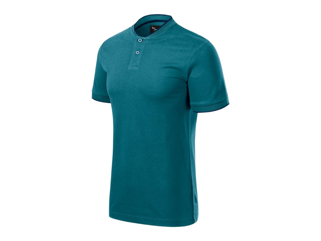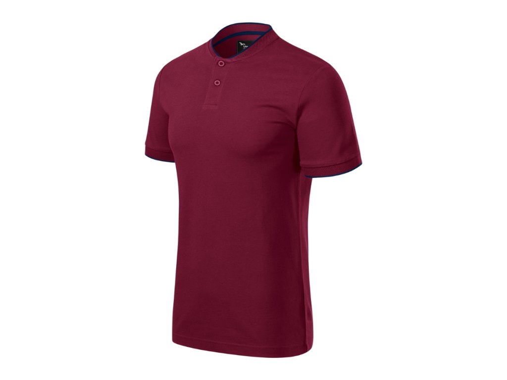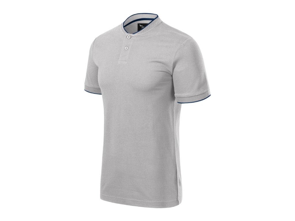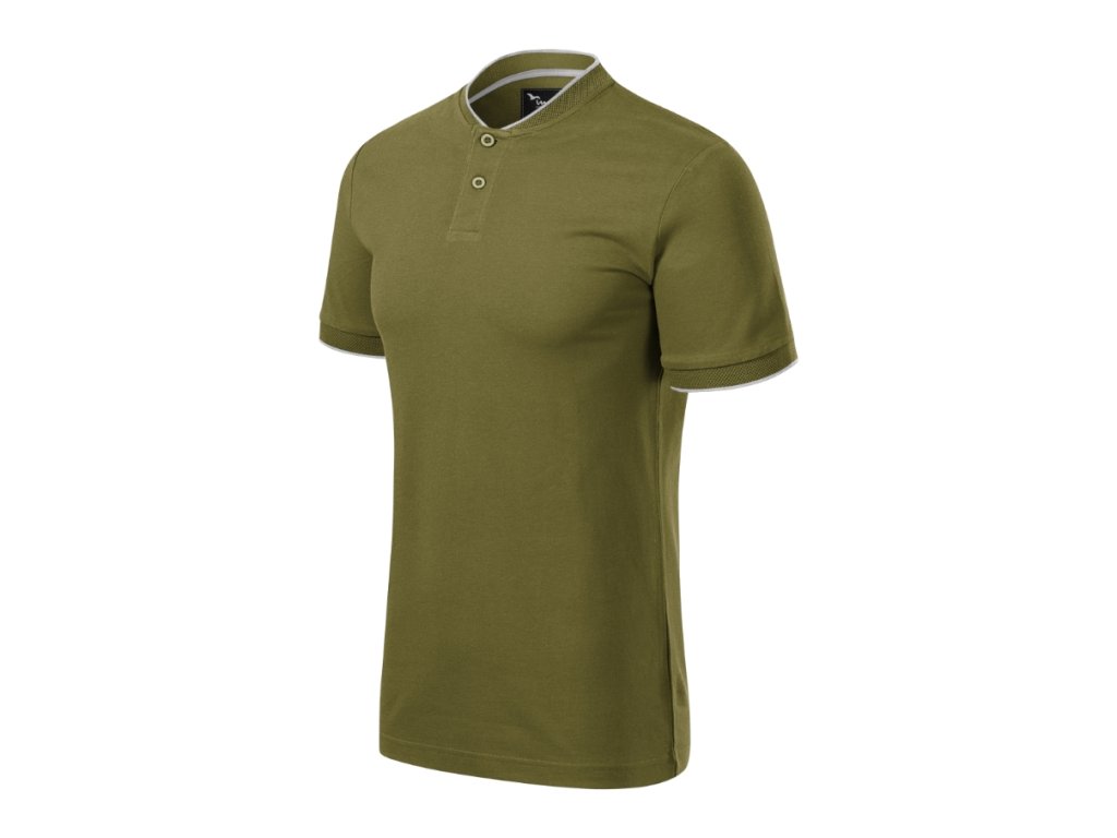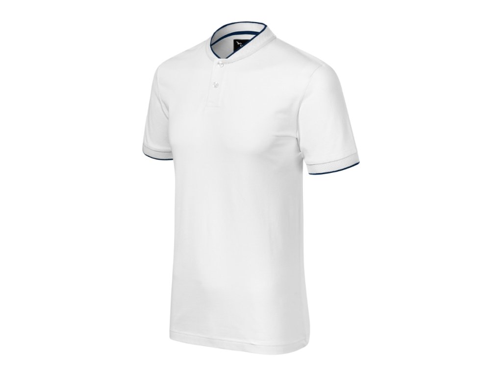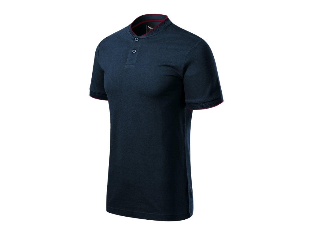 střih s bočními švy, límeček ve stylu “bomber” , límeček a lemy rukávů s kontrastním proužkem z žakárového úpletu , léga s 2 knoflíčky v barvě materiálu, vnitřní průkrčník začištěn kontrastní páskou, zpevnění ramenních švů páskou