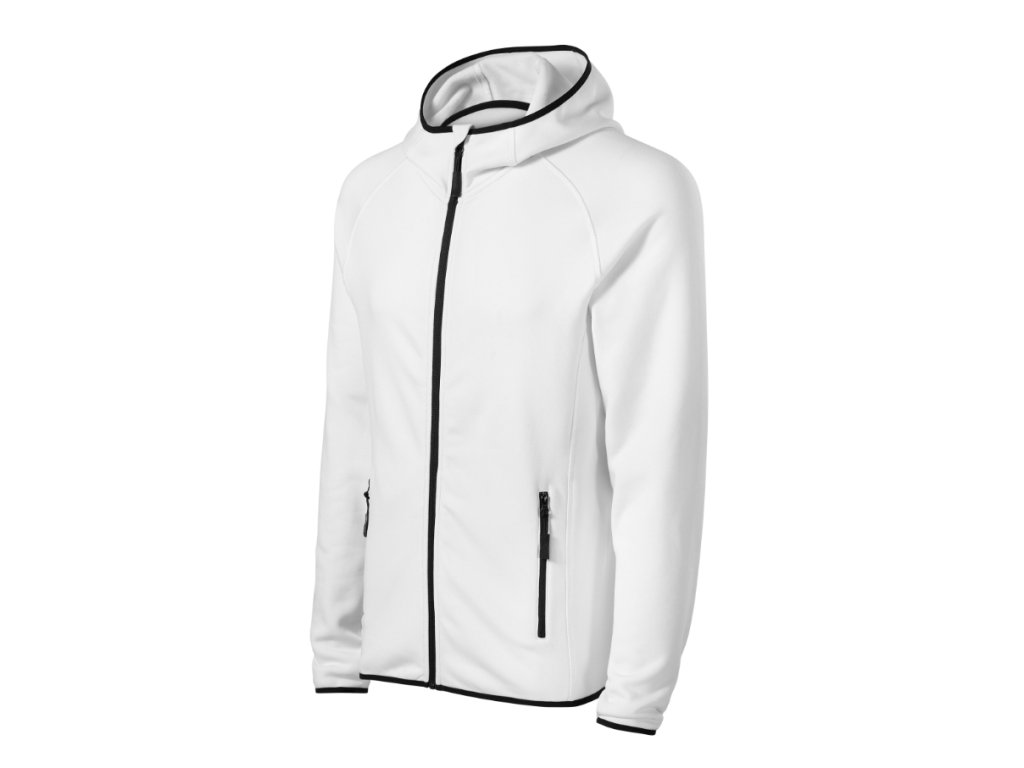 hladký strečový rychleschnoucí materiál, ideální pro sport a pohybové aktivity, rovný střih s bočními díly, celopropínací reverzní spirálový zip, kapuce s krytkou brady, vnitřní průkrčník začištěn páskou, raglánové rukávy, kapsy na zip, lemování elastickým proužkem, tvarovaný a mírně prodloužený zadní díl, kontrastní prvky (vyjma barvy 01), etiketa v podobě odnímatelné nálepky