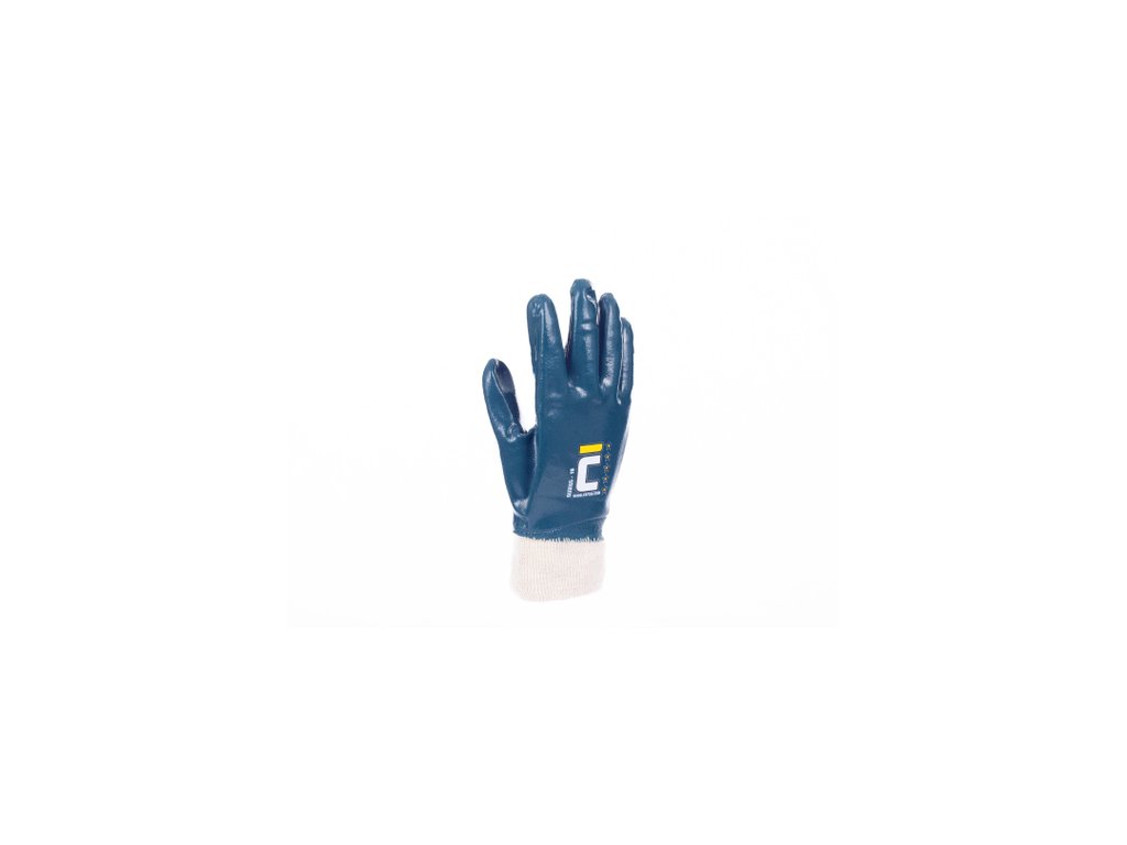 • rukavice šité z bavlněného úpletu • máčené v silnější vrstvě nitrilu (protismykový úchop) • elastická pletená manžeta zabraňující průniku nečistot • jsou určené pro prácí s abrazivními materiály v silně zaolejovaném prostředí