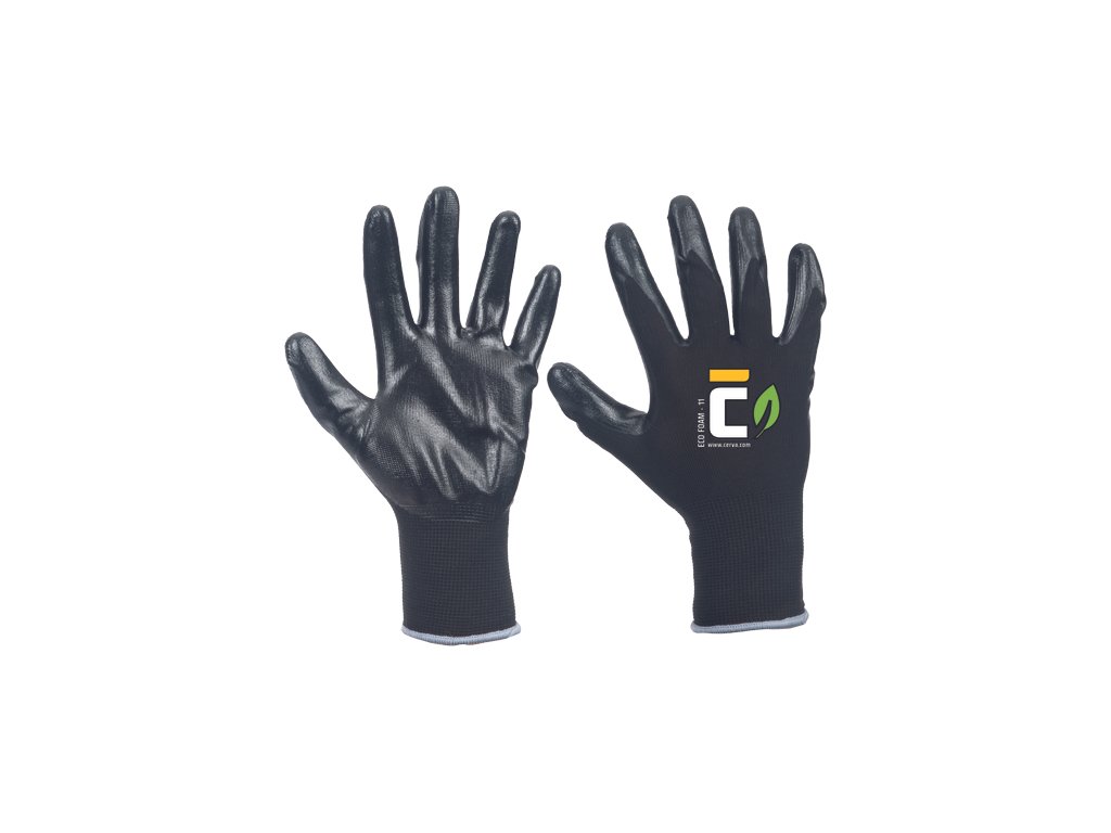 • černé bezešvé pěnové nitrilové rukavice • pětiprsté bezešvé rukavice jsou vyrobeny z černé recyklované polyesterové příze pro pohodlné nošení • dlaň je potažena pěnovým nitrilem, který zajišťuje vynikající přilnavost, pružnost a je ideální pro přesnou manipulaci ve vlhkém a olejnatém průmyslovém prostředí • spolehlivé, ekologické řešení pro náročné pracovní podmínky