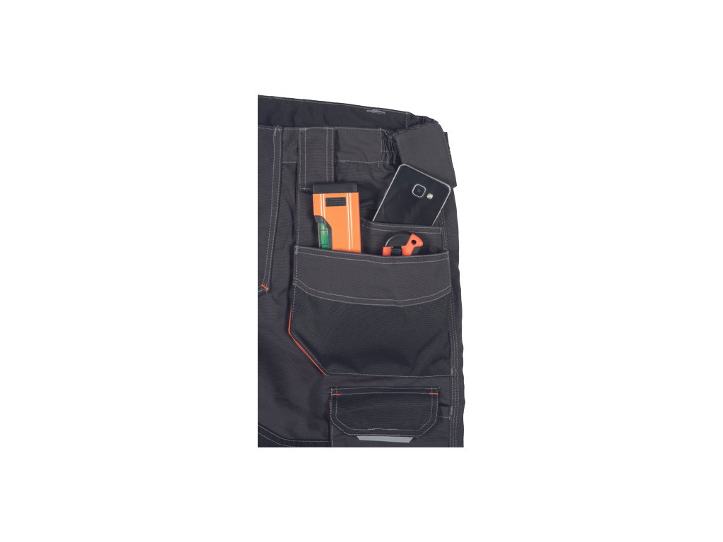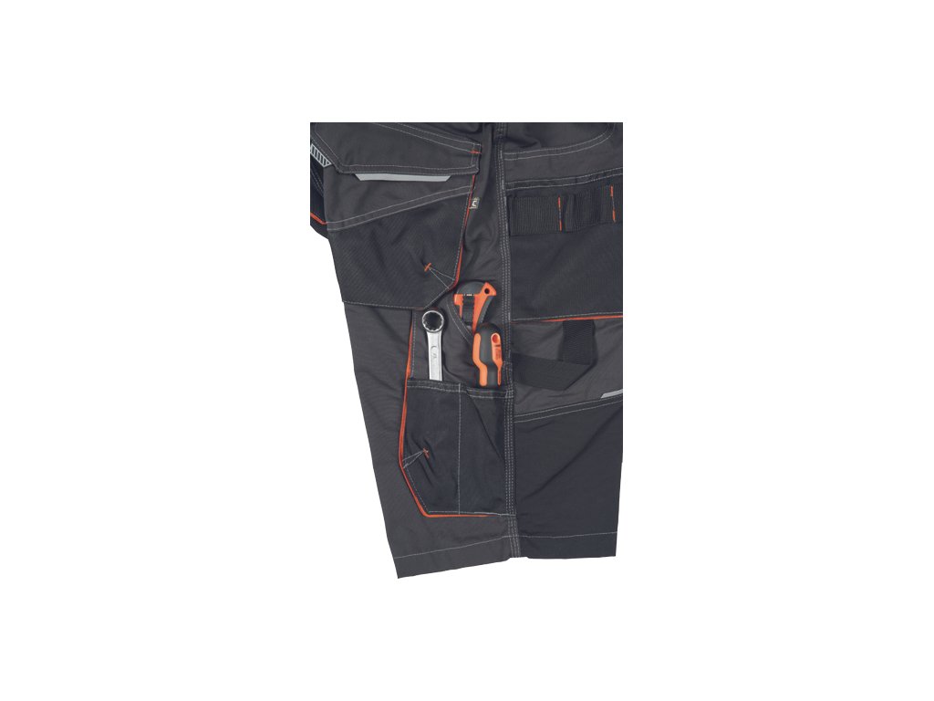 • pánské pracovní šortky s pružným pasem a multifunkčními kapsami • Oxford 600D zesílení v oblasti stehen • odolné trojité prošití nohavic a sedu • reflexní prvky