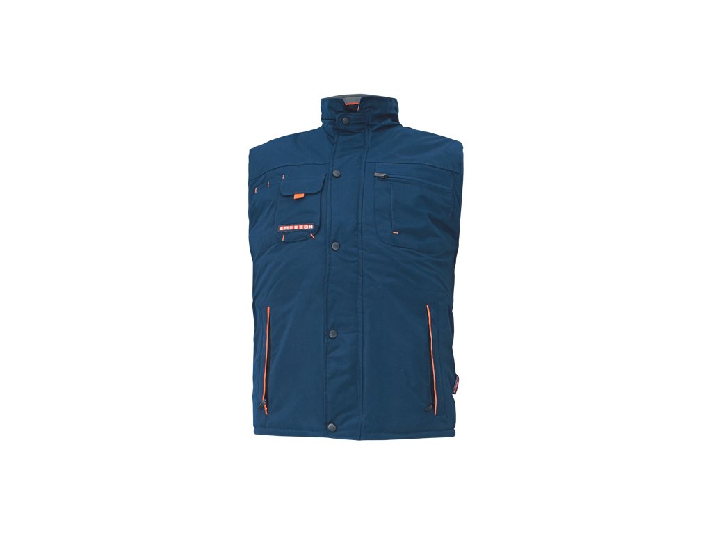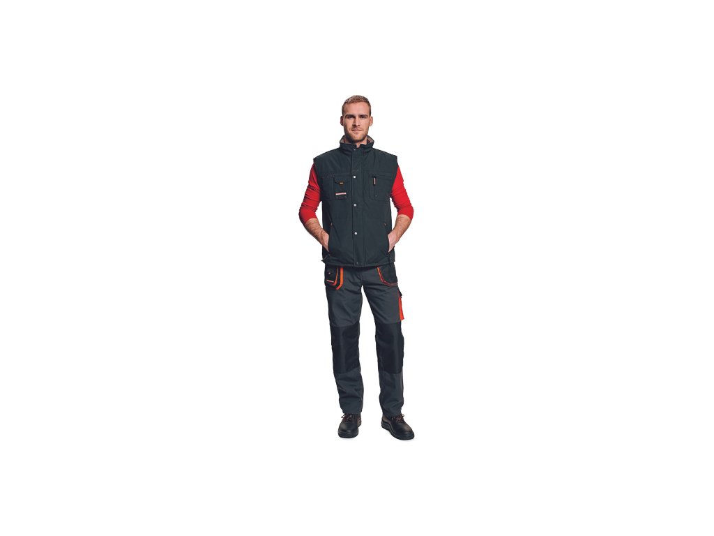 • zimní pracovní vesta s fleecovým límcem, zateplení mikrovláknem • zapínání na zip kryté légou • vodě a větru odolná • 2 přední kapsy na zip, 2 náprsní kapsy