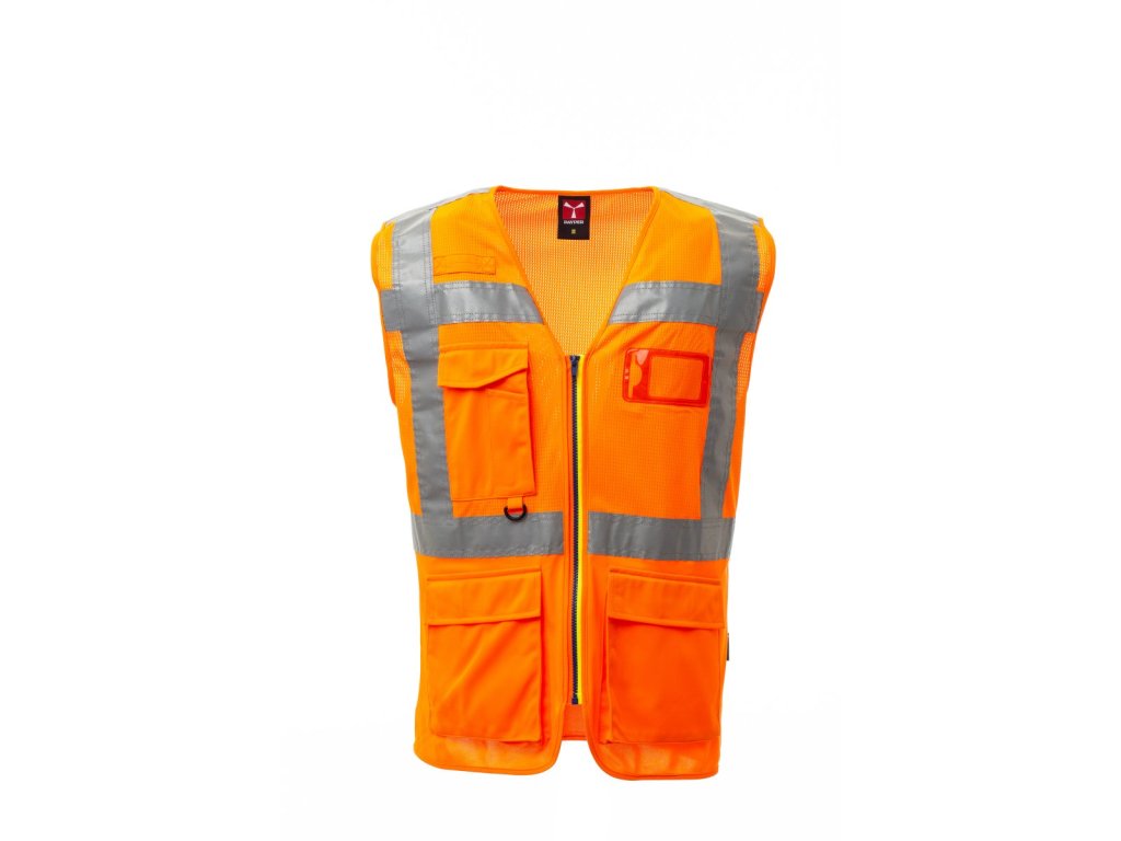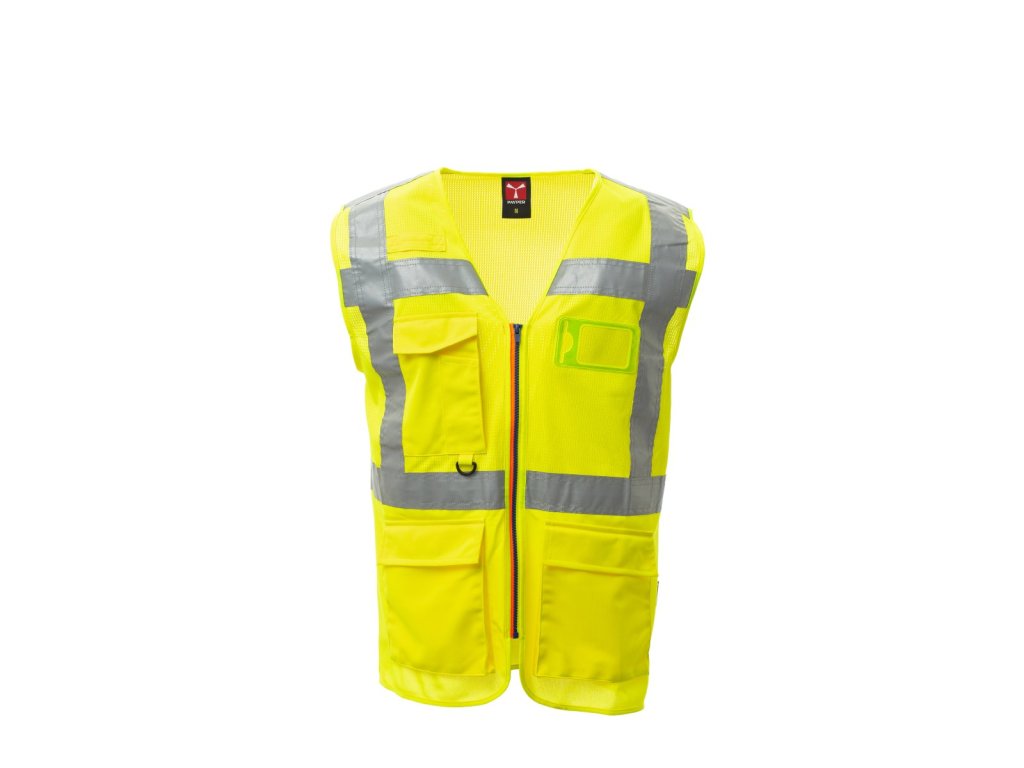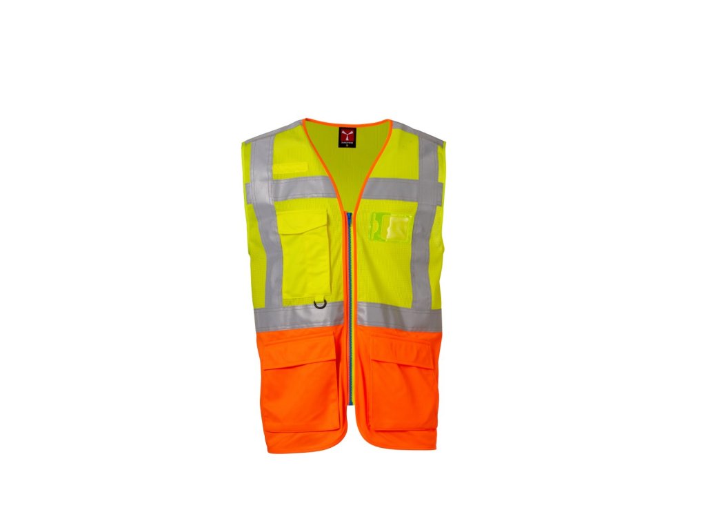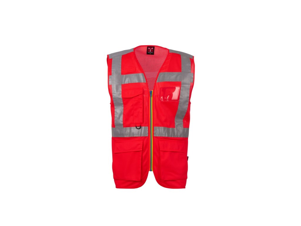 Vesta s vysokou viditelností z prodyšné síťoviny v horní části a dry-tech tkaniny ve spodní části, u některých modelů kontrastní. Vodorovné reflexní pásky na ramenou, hrudi a v pase a dvě svislé reflexní pásky. Zapínání na zip SBS, s dvoubarevnou stuhou. Pevné pouzdro na jmenovku na levé straně hrudi při oblečeném oděvu. Při oblečeném oděvu: víceúčelové poutko, kapsa s kapsičkou na tužku na suchý zip a kroužek na pravé straně hrudi. Dvě vnější kapsy s klínkem na suchý zip v horní části a bočním průstřihem.