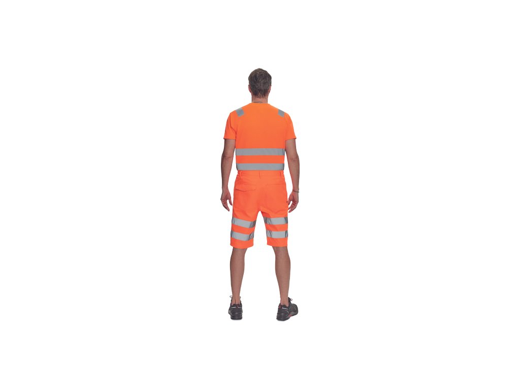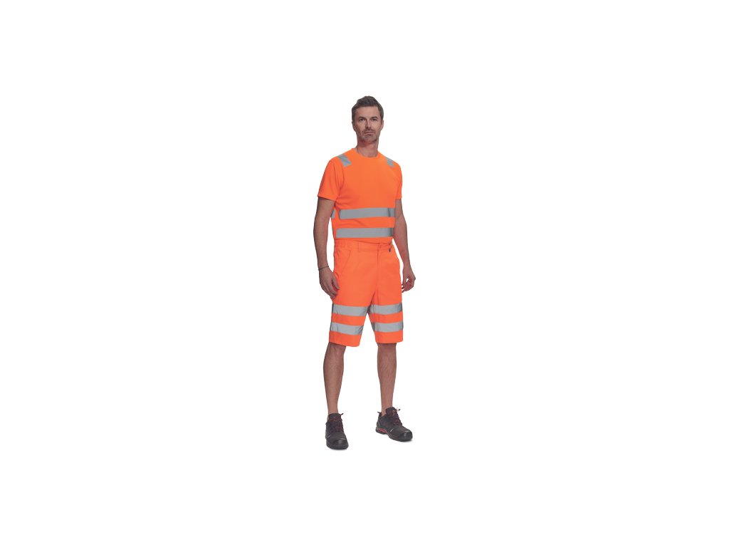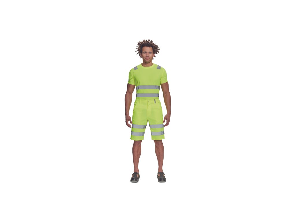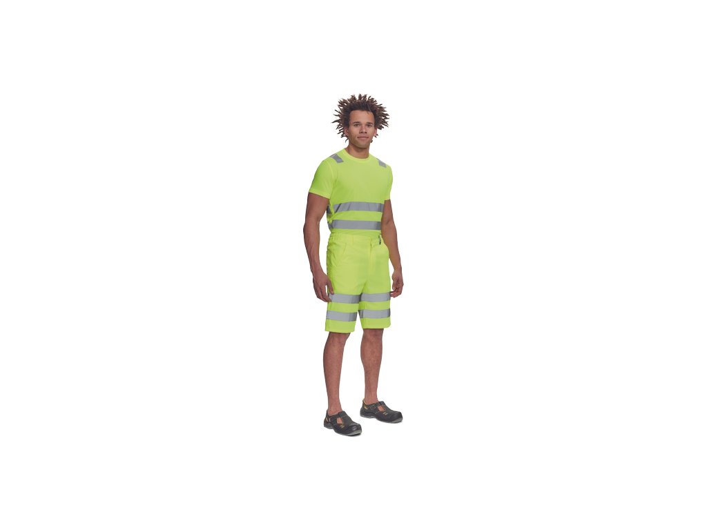 • pánské lehké full HI-VIS pracovní šortky s reflexními pruhy, elastický pas • 2 postranní kapsy, 1 kapsička na mince • 2 zadní kapsy