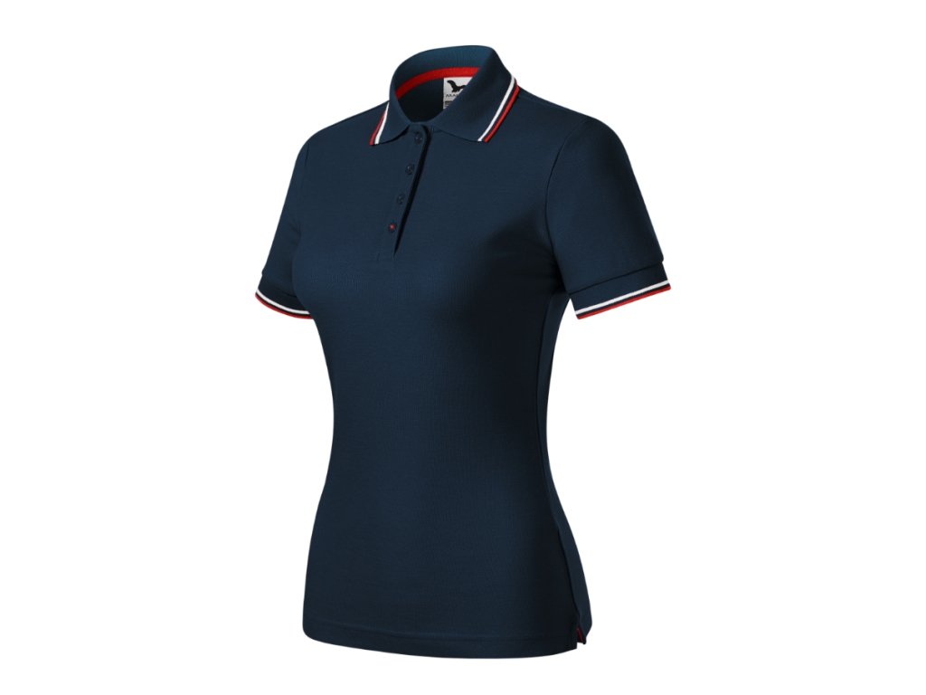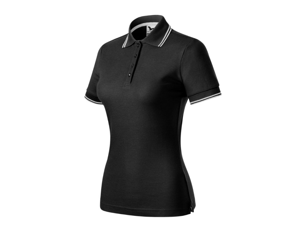 lehce vypasovaný střih s bočními švy, límeček z žebrového úpletu 1:1, 2 kontrastní proužky na rukávu a límečku , úzká léga s 4 knoflíčky v barvě materiálu, spodní knoflíček přišitý kontrastní nití, vnitřní průkrčník začištěn kontrastní páskou, zpevnění ramenních švů páskou, rozparky v bočních švech s kontrastní páskou, zboží II. jakosti, na zboží II. jakosti se nevztahuje reklamace