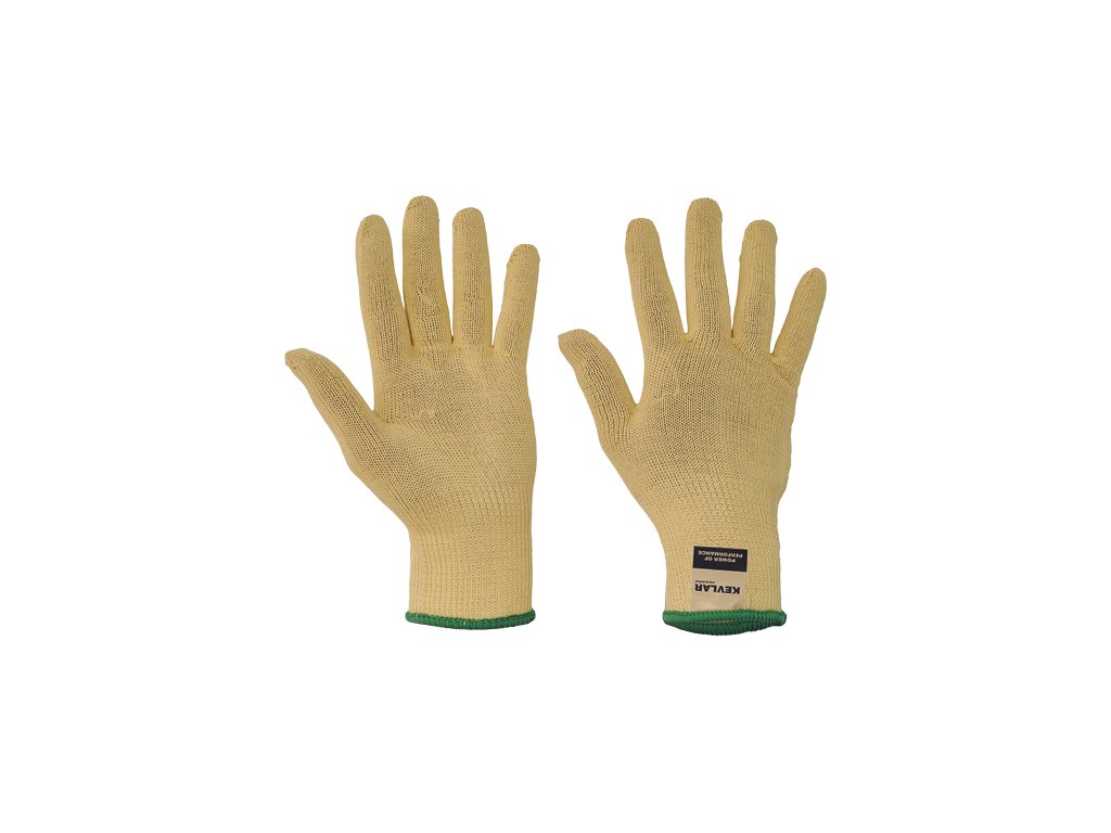 • pletené bezešvé obouruké rukavice ze středně silného kevlarového úpletu