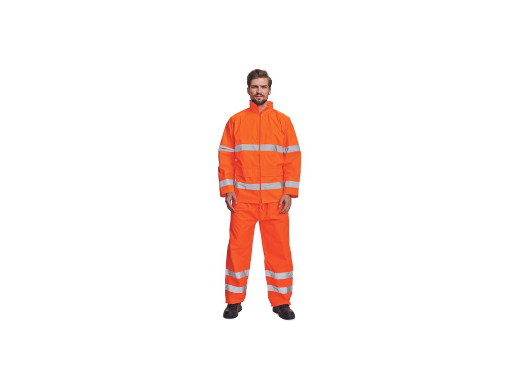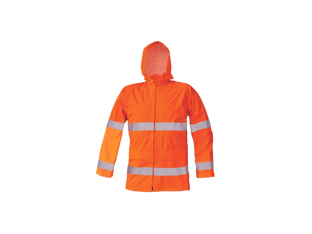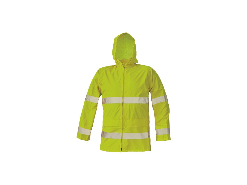 • lehká pánská HI-VIS nepromokavá bunda s integrovanou kapucí a reflexními pruhy • vysoká voděodolnost, paropropustná • 2 přední kapsy kryté klopou • spodní lem ke stažení na tkaničku • odvětrávání bundy na zádech a v podpaží • podlepené švy