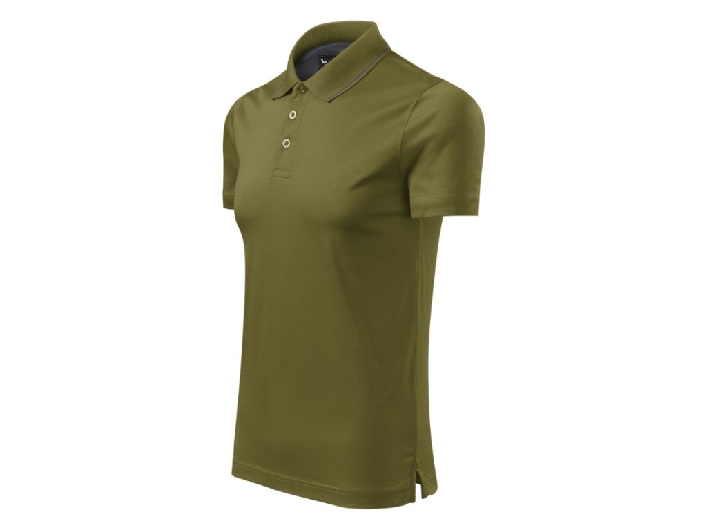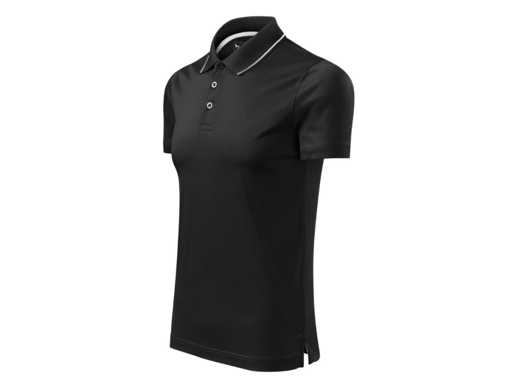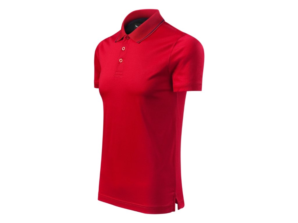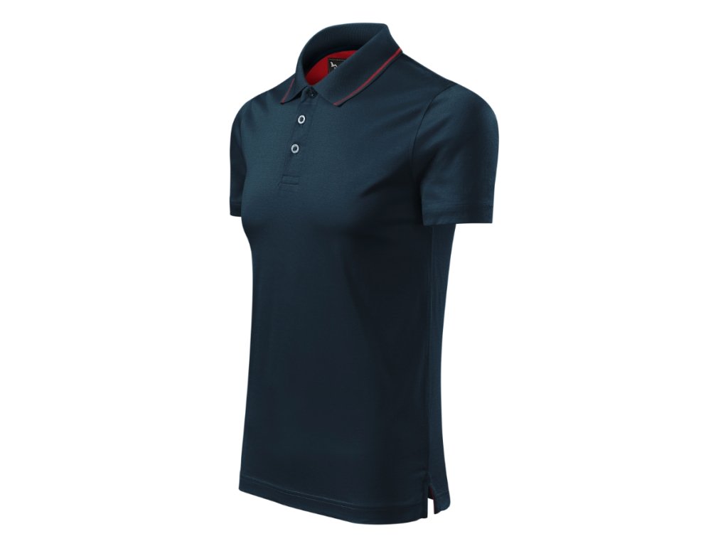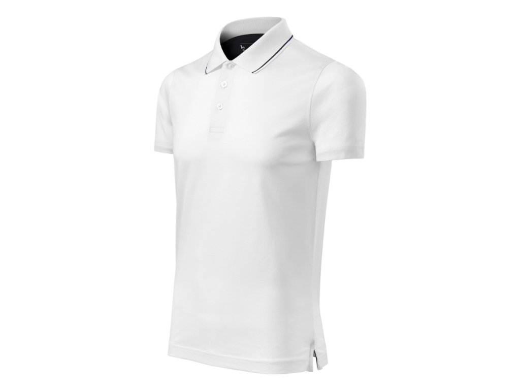 střih s bočními švy, límeček s kontrastním proužkem z žebrového úpletu 1:1, léga s 3 knoflíčky v barvě materiálu, rozparky v bočních švech s kontrastní páskou, vnitřní průkrčník začištěn kontrastní páskou, zpevnění ramenních švů páskou, bavlna zušlechtěna mercerací
