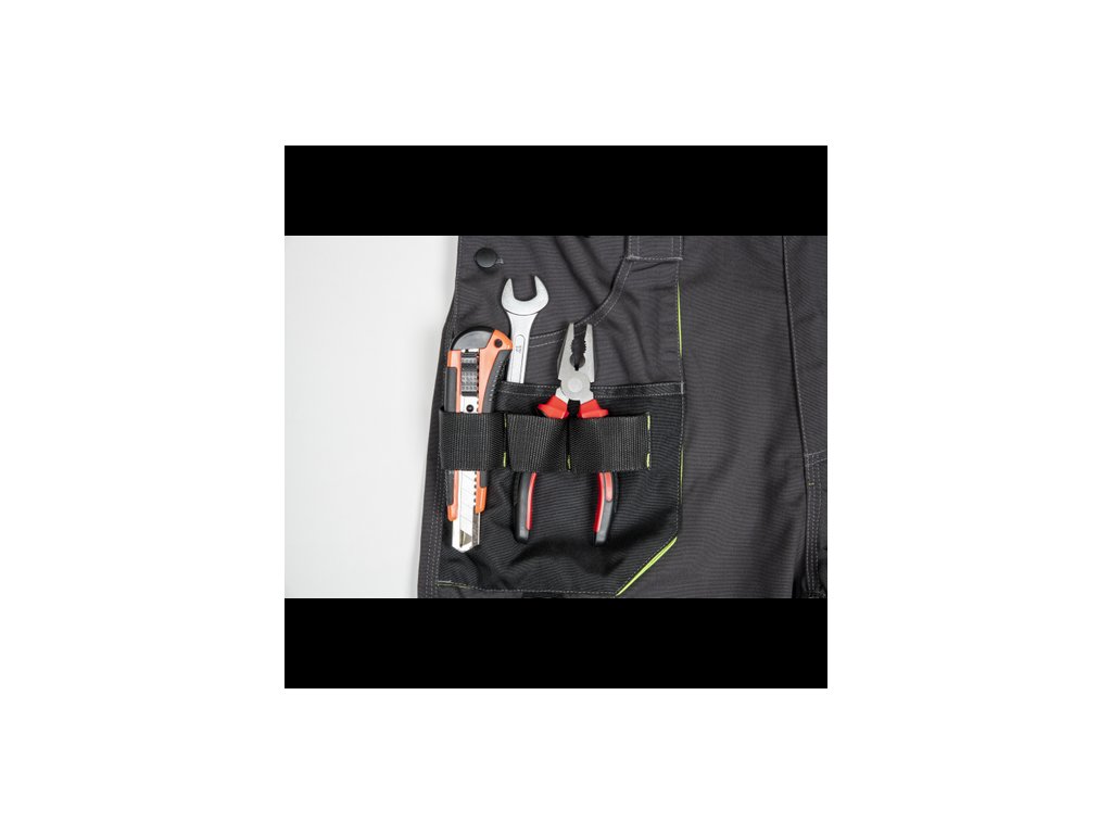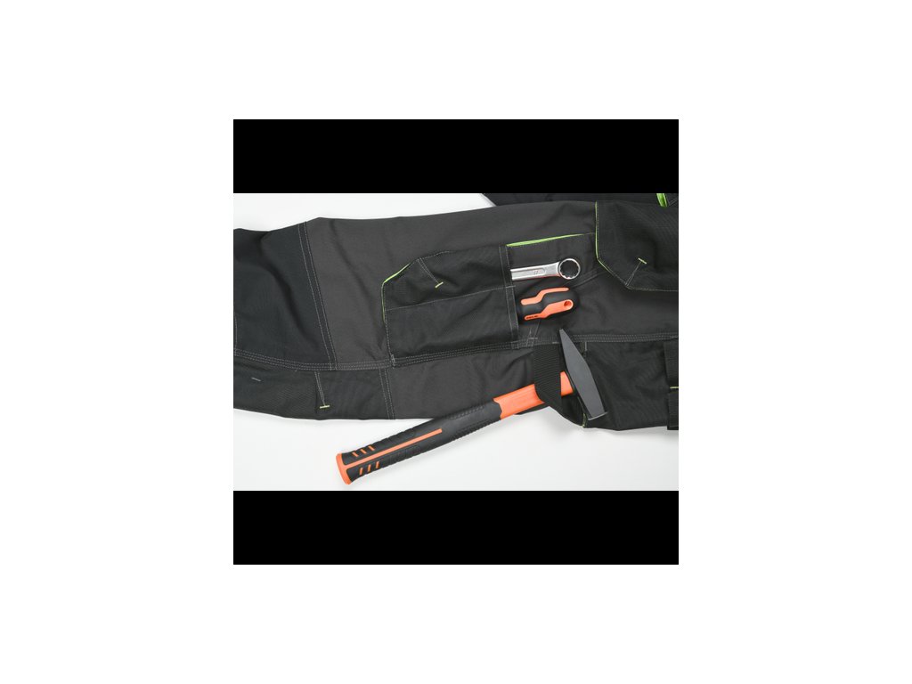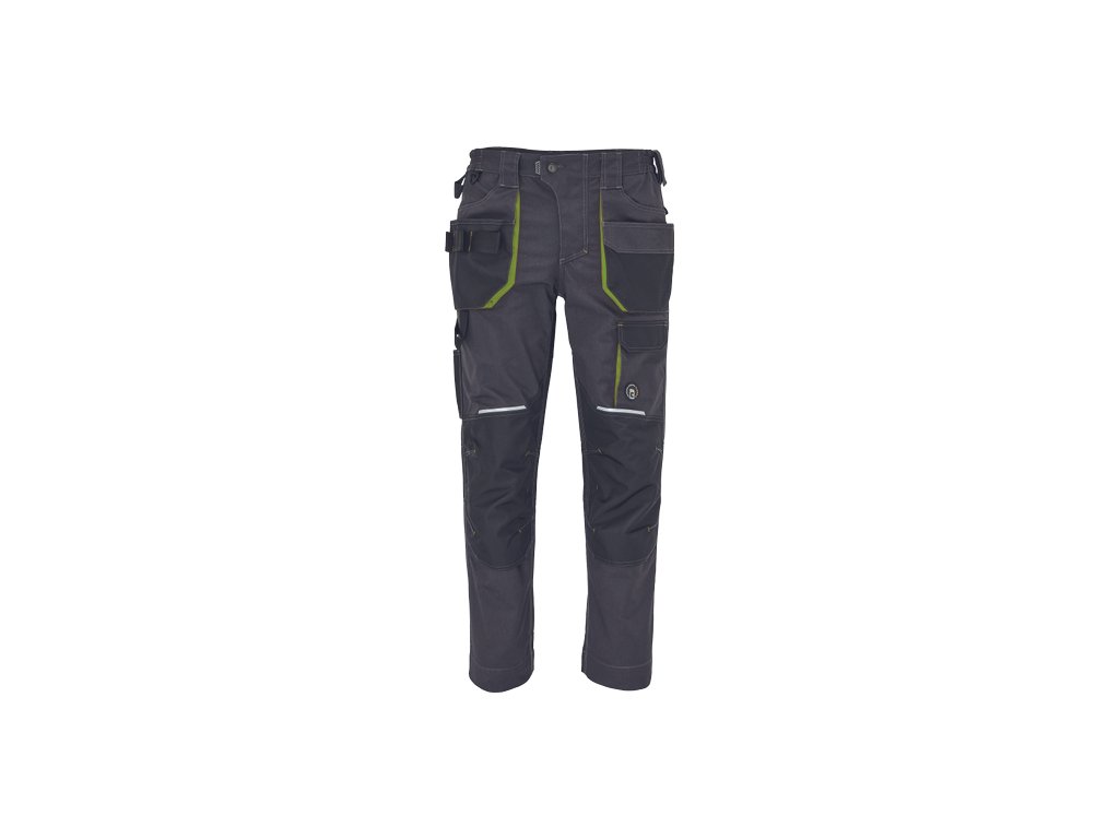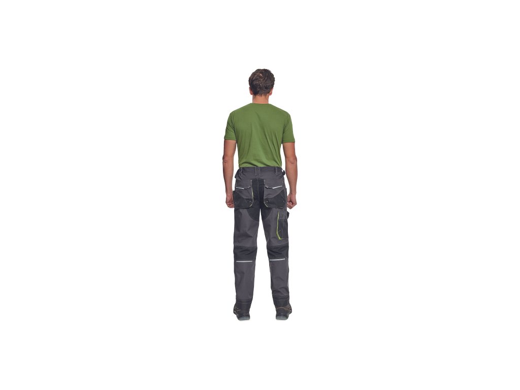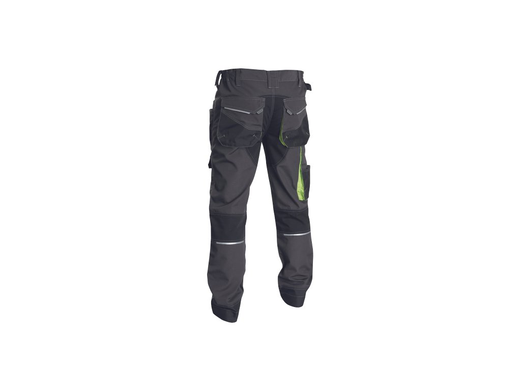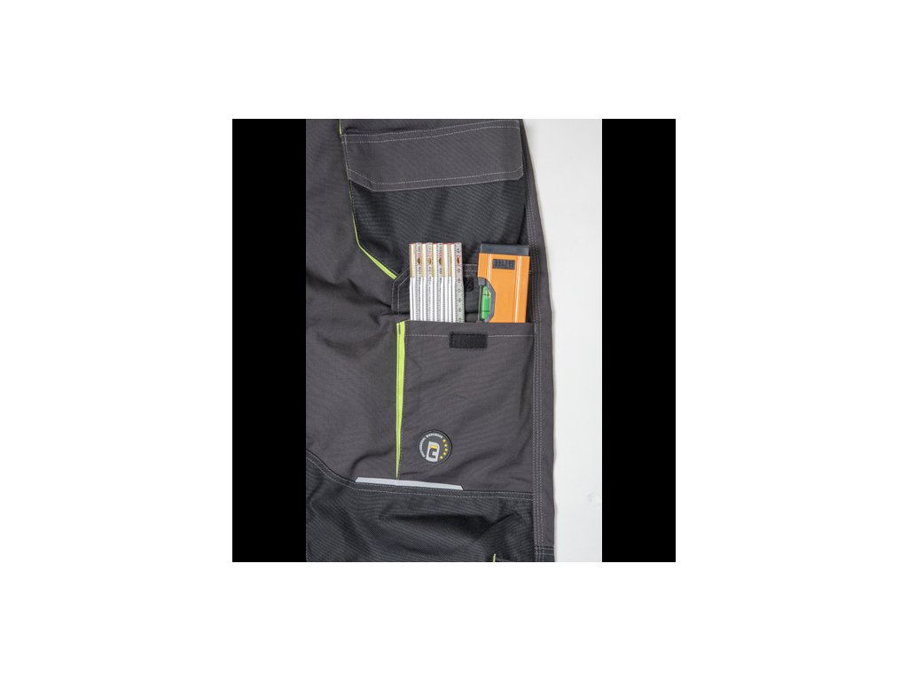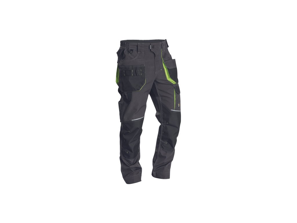 • pánské pracovní kalhoty s pružným pasem a multifunkčními kapsami • Oxford 600D zesílení kolenních kapes pro vkládání ochranných nákoleníků • odolné trojité prošití nohavic a sedu • reflexní prvky • nastavitelná délka nohavic