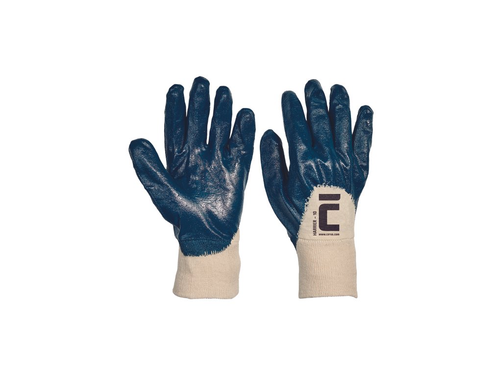 • rukavice šité z bavlněného úpletu • polomáčené v nitrilu • s pružným nápletem