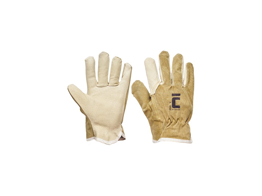 • celokožené rukavice z vepřové lícovky v dlani a na prstech • vepřové štípenky na hřbetu