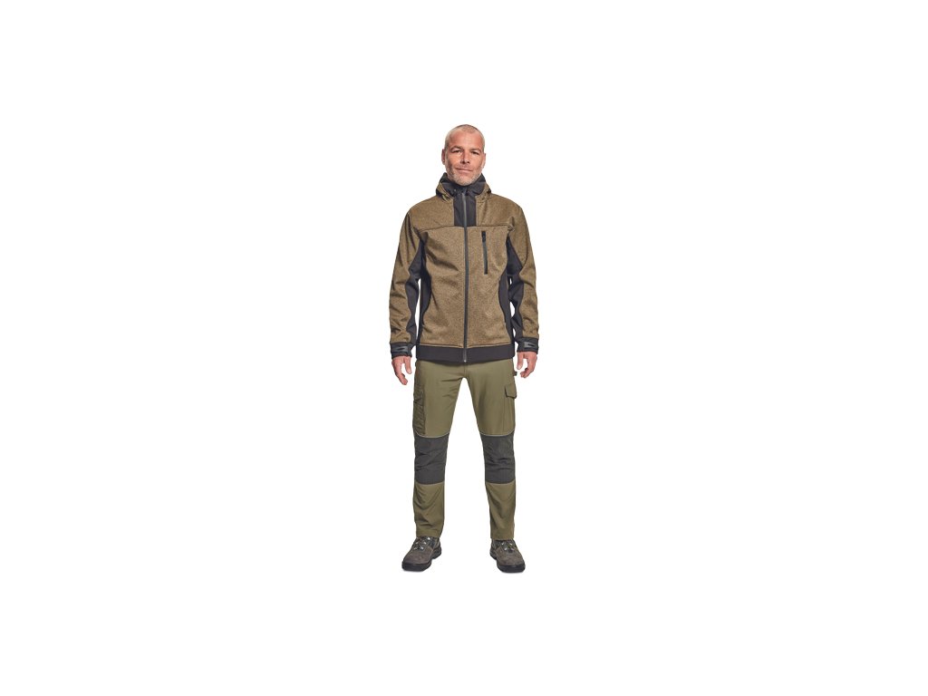 • pánská softshellová bunda se zapínáním na zip a s kapucí • voděodolná membrána, prodyšná • 2 boční kapsy na zip • 1 náprsní kapsa na zip • nastavitelná šíře spodního obvodu rukávů pomocí suchého zipu • stahovací šňůrka v kapuci