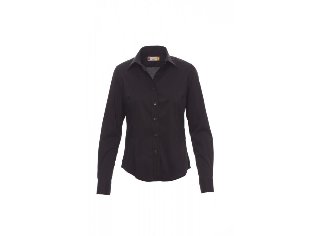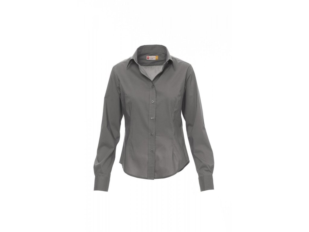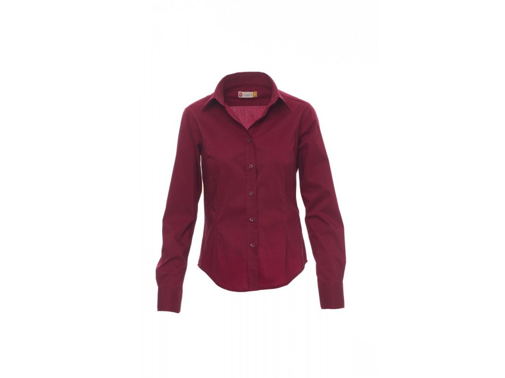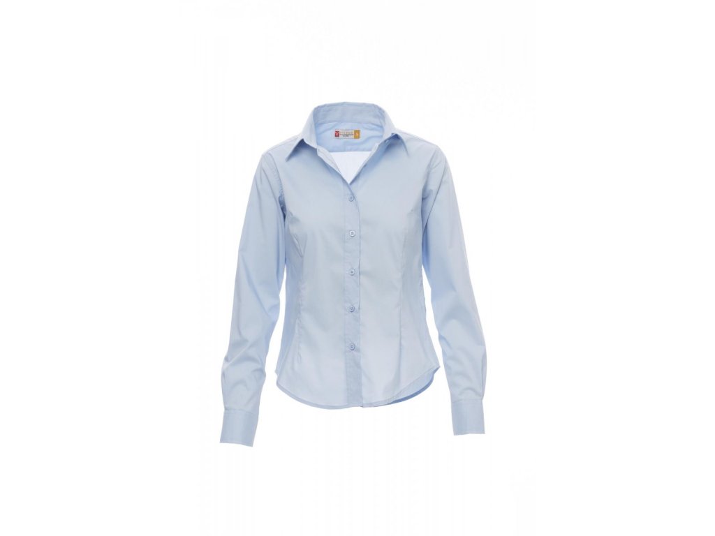 Dámská vyštíhlená košile s dlouhým rukávem z jemné česané bavlněné látky, záševky vepředu i vzadu, italský límeček, tvarované manžety s 2 knoflíky a knoflíkovou dírkou, oboustranně prošitá léga s barevně sladěnými knoflíky. Zadní strana: hladké zádové sedlo. Ošetření látky easy care.