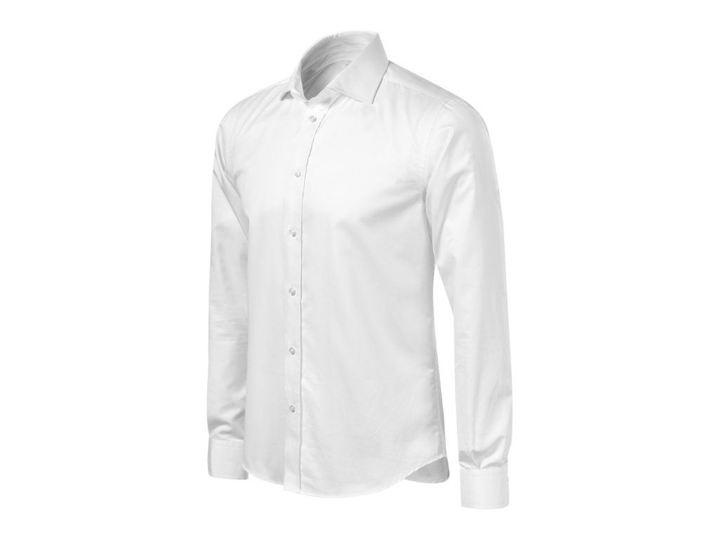 navrženo předním českým krejčím Romanem Humlíčkem, příze z extra dlouhých vláken, zúžený střih s bočními švy, dvojité sedlo a záševky na zadním dílu, dvoudílný košilový límec, vyztužené špičky límce, přední kraje začištěny légou, dlouhé rukávy s kulatou manžetou na 2 knoflíčky, perleťové knoflíčky v barvě 00 (2 náhradní navíc), tvarovaný dolní kraj