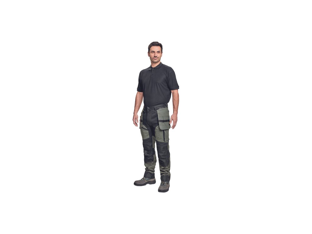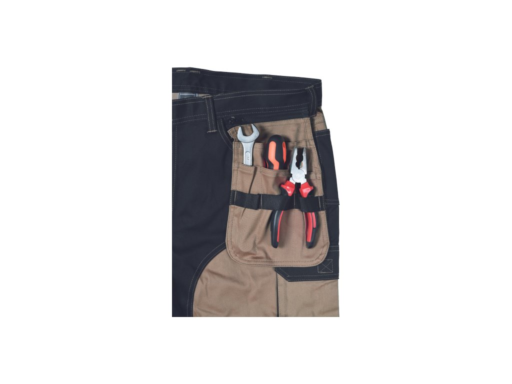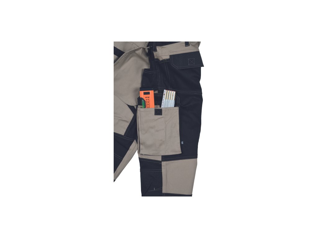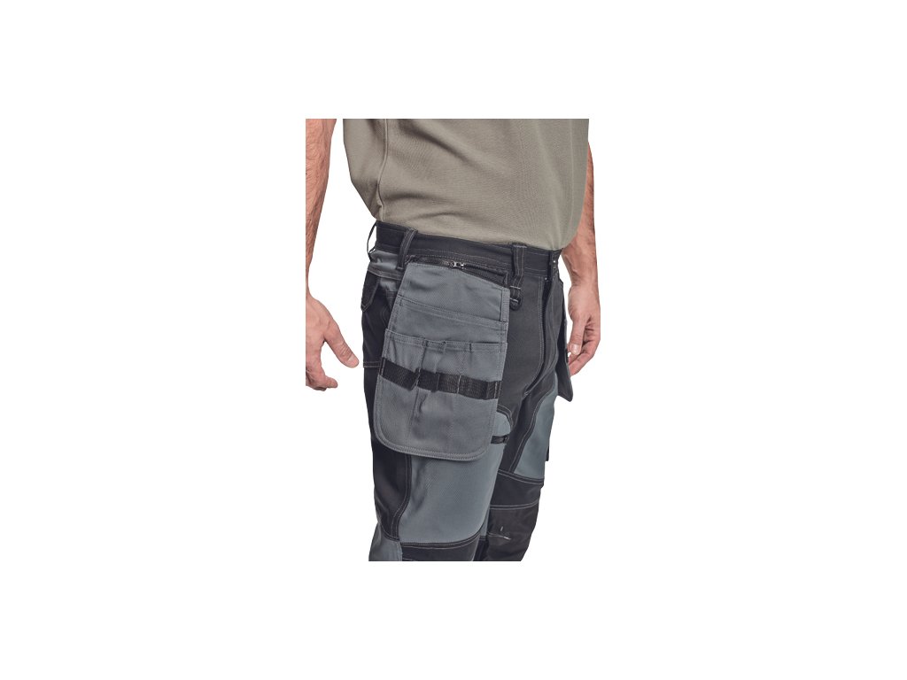 • kvalitní pánské pracovní kalhoty z elastického materiálu • multifunkční kapsy • 2 extra odepínací multifunkční kapsy na zip • zesílená oblast kolen s možností vkládání kolenních výztuh • záložka na nohavici umožňující prodloužení délky až o 5 cm • dekorativní prošití