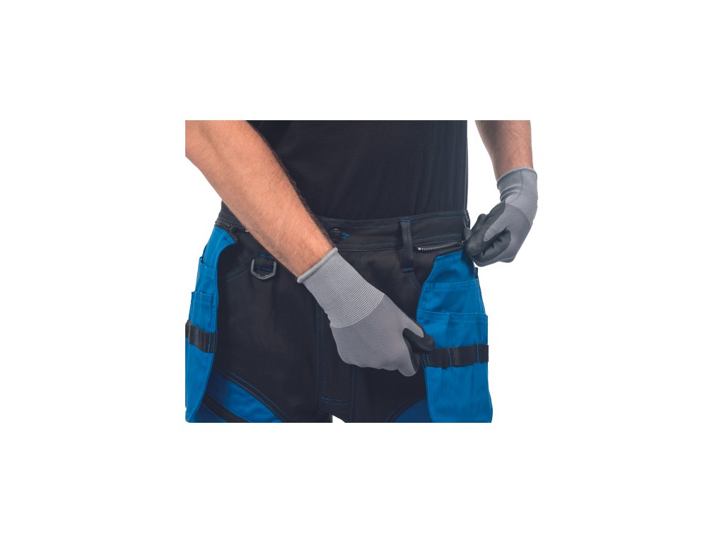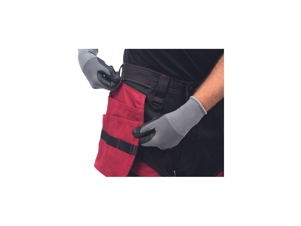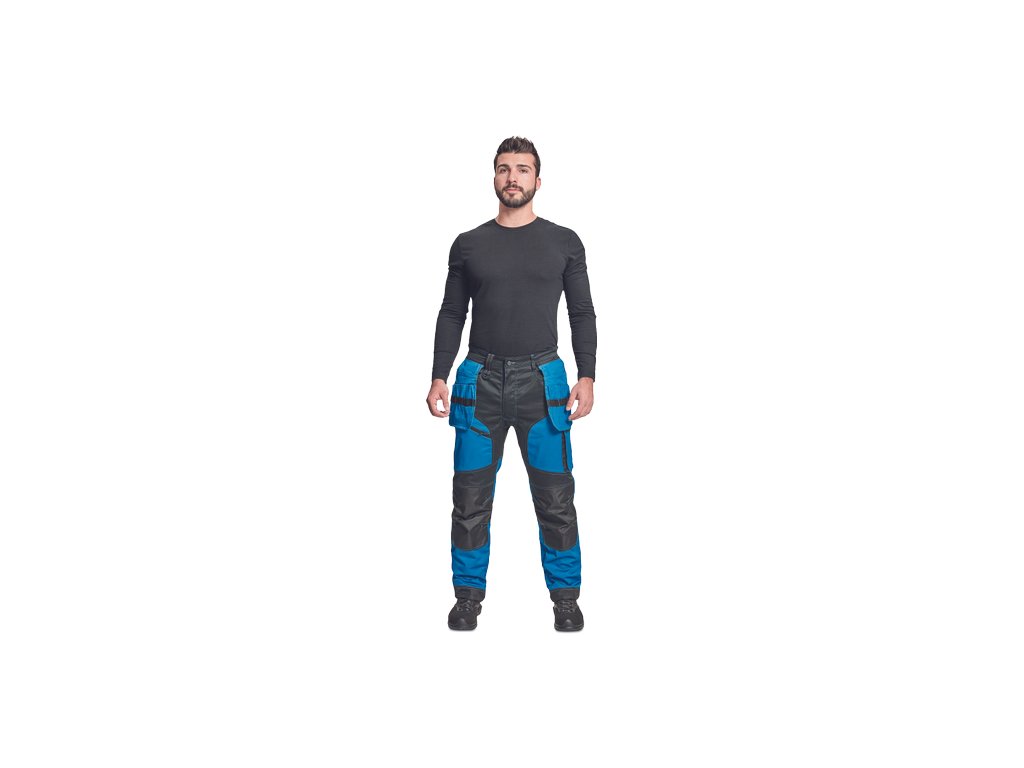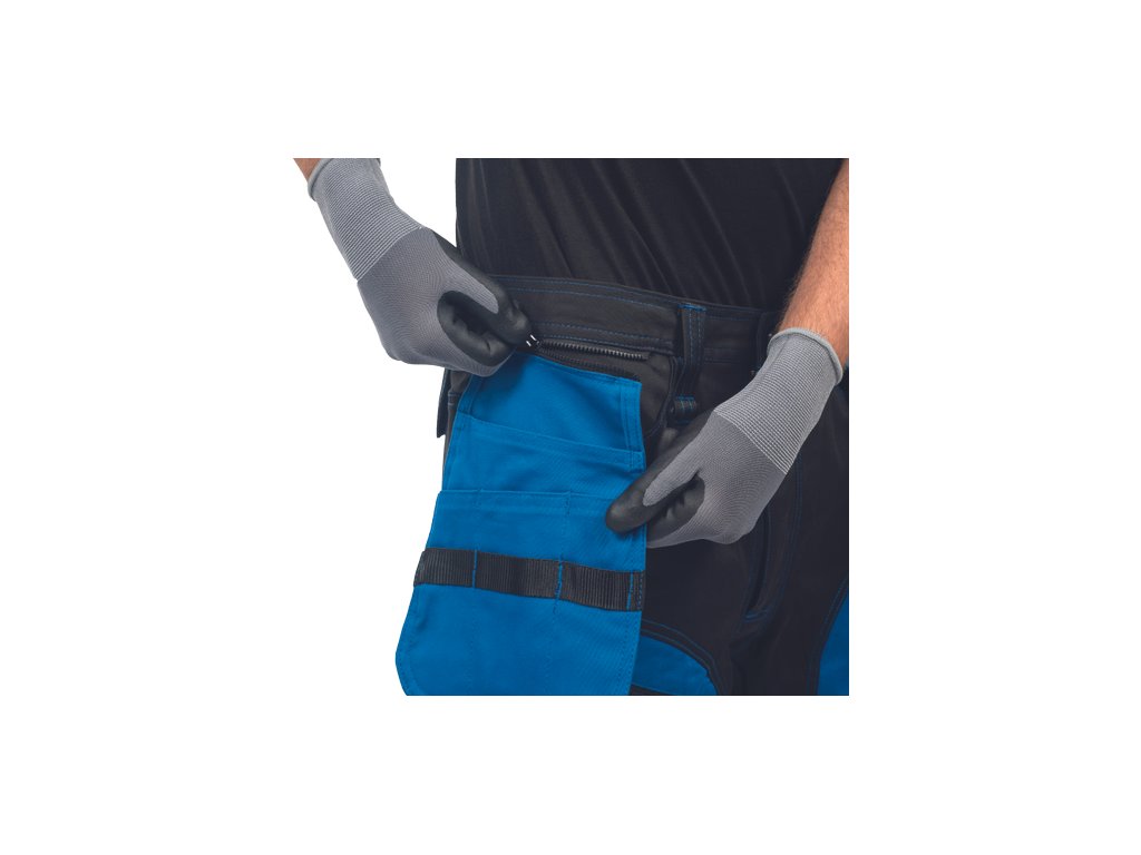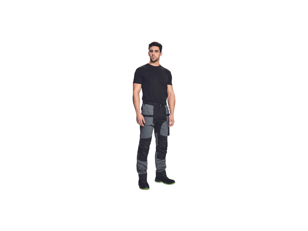 • kvalitní pánské pracovní kalhoty z elastického materiálu • multifunkční kapsy • 2 extra odepínací multifunkční kapsy na zip • zesílená oblast kolen s možností vkládání kolenních výztuh • záložka na nohavici umožňující prodloužení délky až o 5 cm • dekorativní prošití