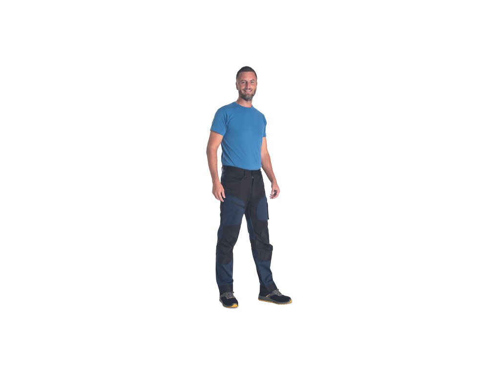 • kvalitní pánské pracovní kalhoty z elastického materiálu • 2 postranní kapsy • 2 zadní kapsy s klopami na suchý zip • 2 stehenní kapsy • zesílená oblast kolen s možností vkládání nákoleníků • záložka na nohavici umožňující prodloužení délky až o 5 cm • dekorativní prošití