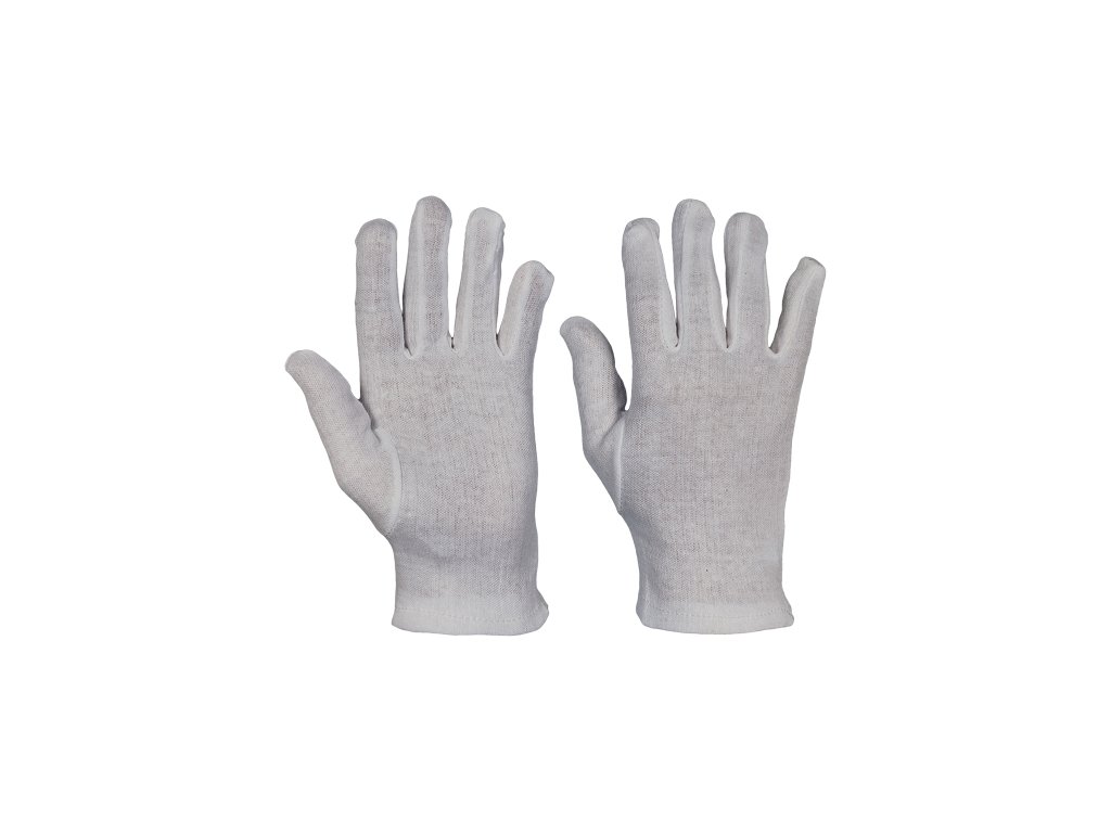 • rukavice šité z jemné bělené bavlněné tkaniny podle střihu fourchette
