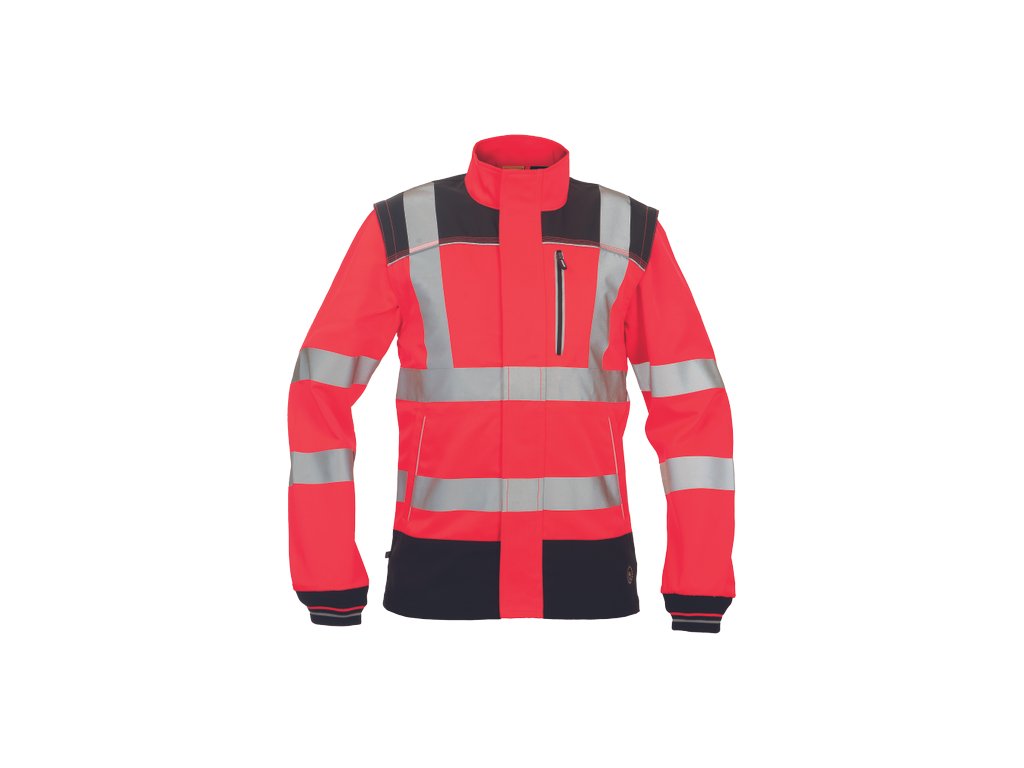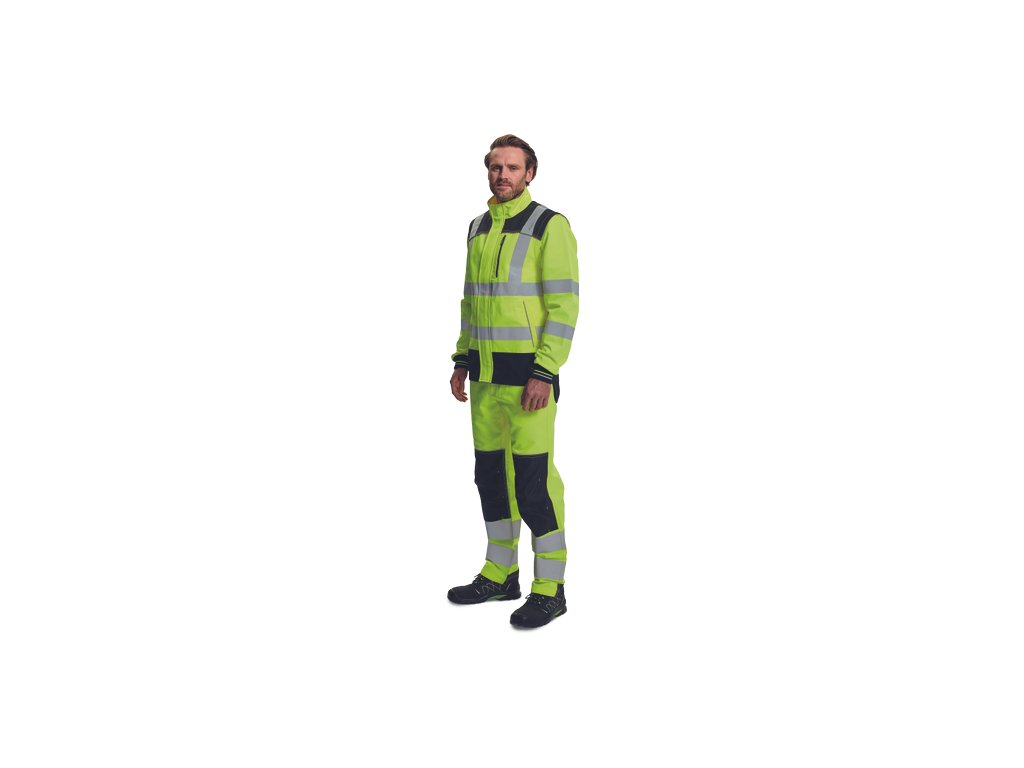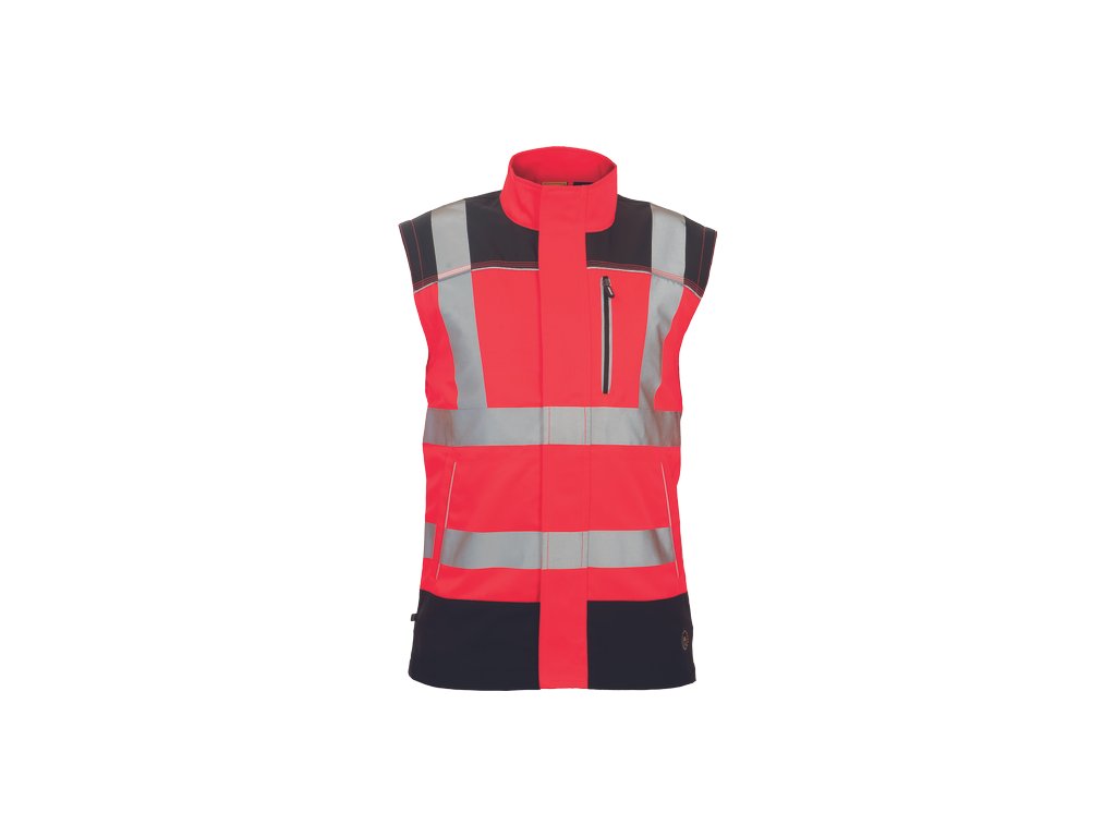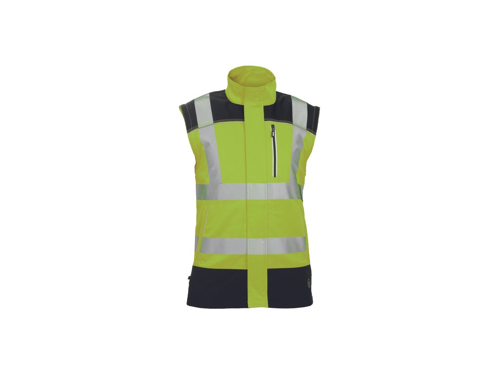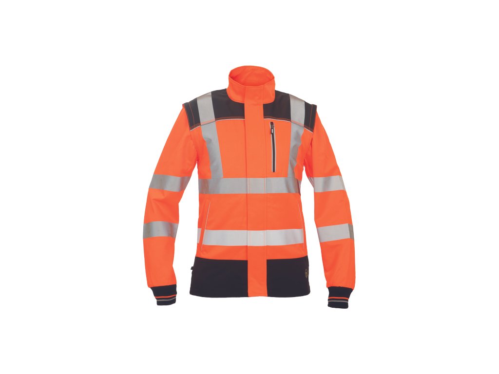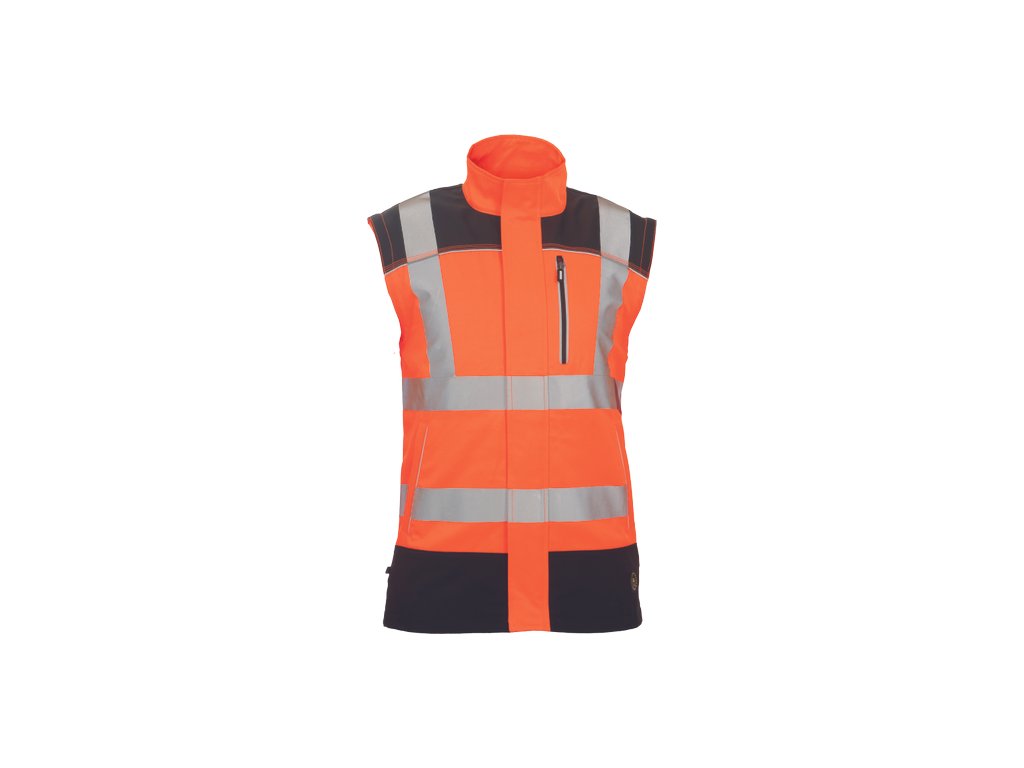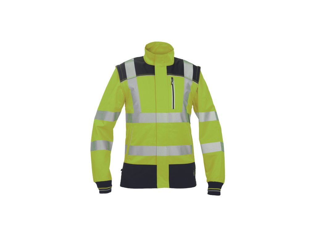 • pánská HI-VIS pracovní bunda s odepínatelnými rukávy • zapínání na zip kryté légou • 600D Oxford zesílení v oblasti ramen • 2 boční kapsy • 1 náprsní kapsa • tištěné 5 cm reflexní pruhy • elastické náplety rukávů