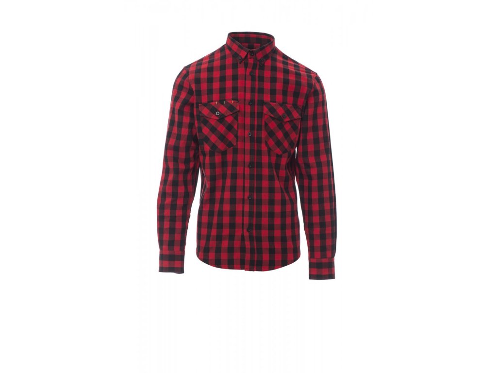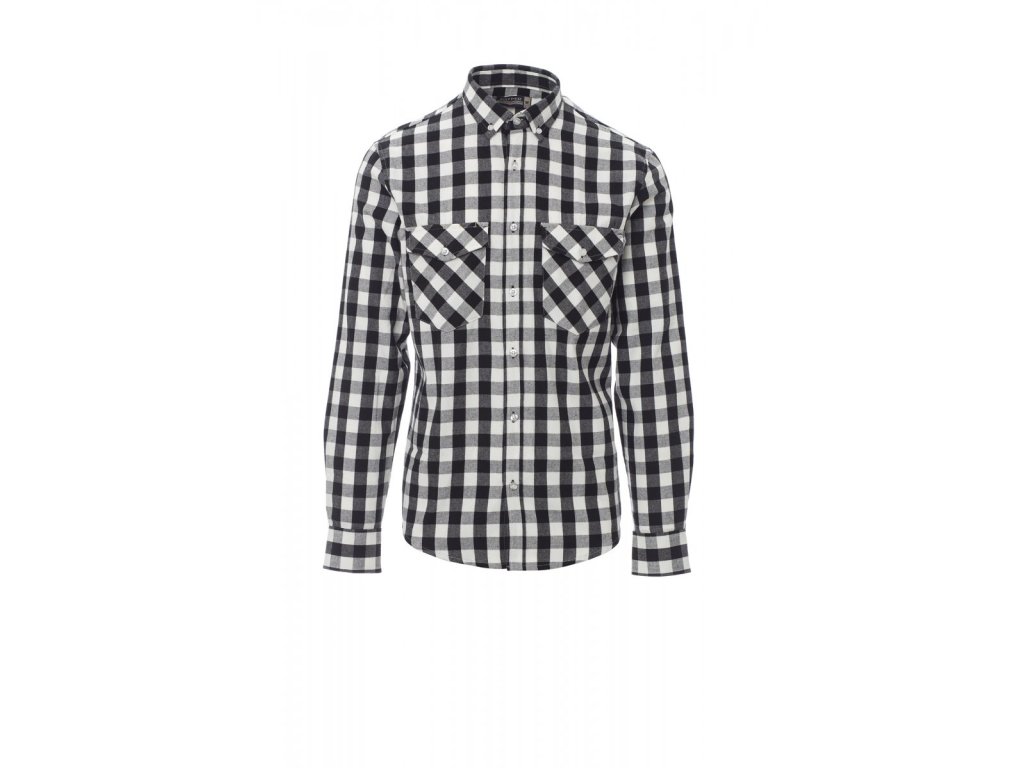 Skotská košile s dlouhým rukávem s perleťovými knoflíky, anglický propínací límeček, sedlo na zadní straně, dvě kapsy na hrudi s klopou na knoflík a kapsičkou na tužku.