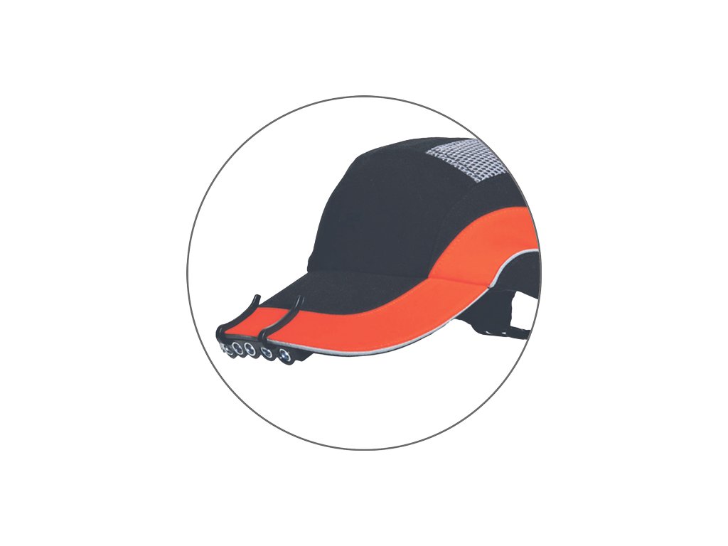 lehká LED lampa se snadno uchytí na kšilt Hardcap čepice s výztuhou; vysoký světelný výkon a kompaktní rozměry; 4 režimy nastavení osvětlení: 1xLED, 3xLED, 5xLED, blikající výstraha