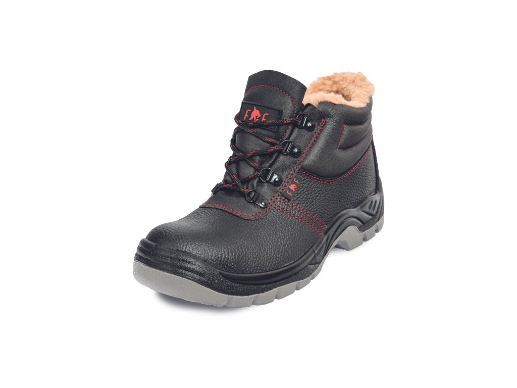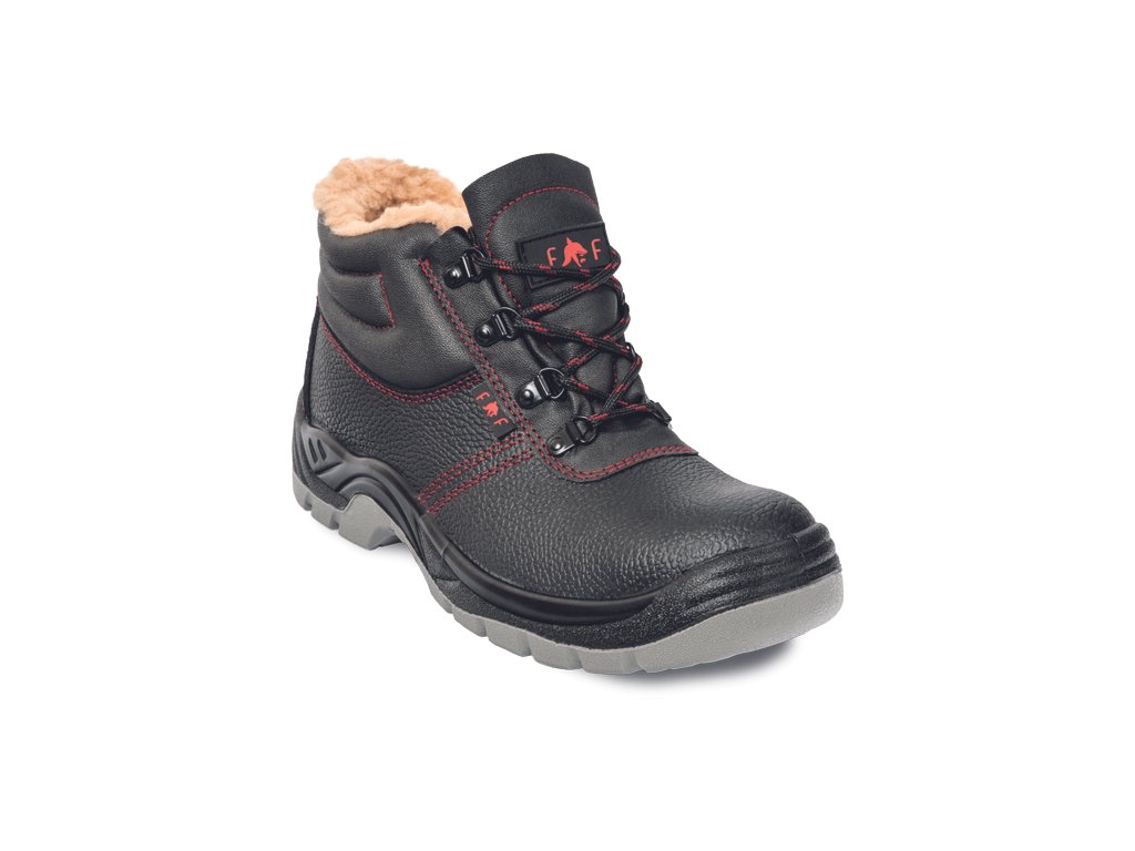 • bezpečnostní kotníková obuv s ocelovou tužinkou, zateplené umělým kožíškem • PU/PU podrážkou, rezistentní olejům • svršek – reliéfní štípaná kůže