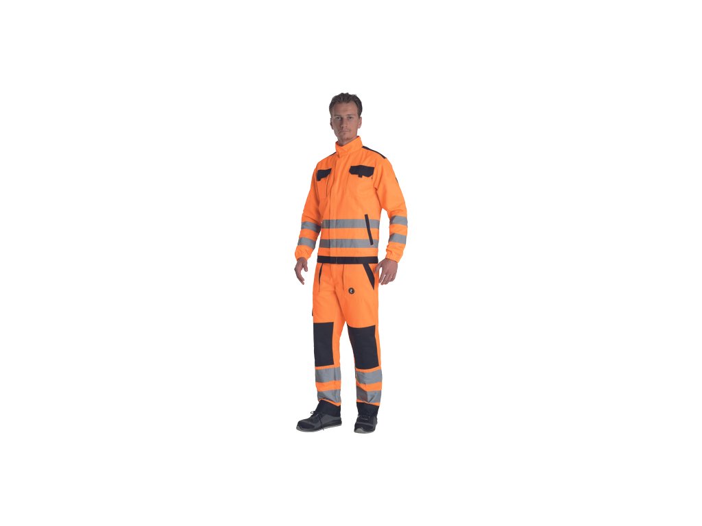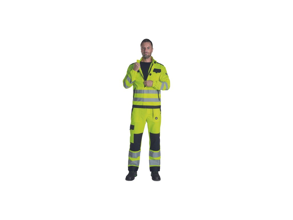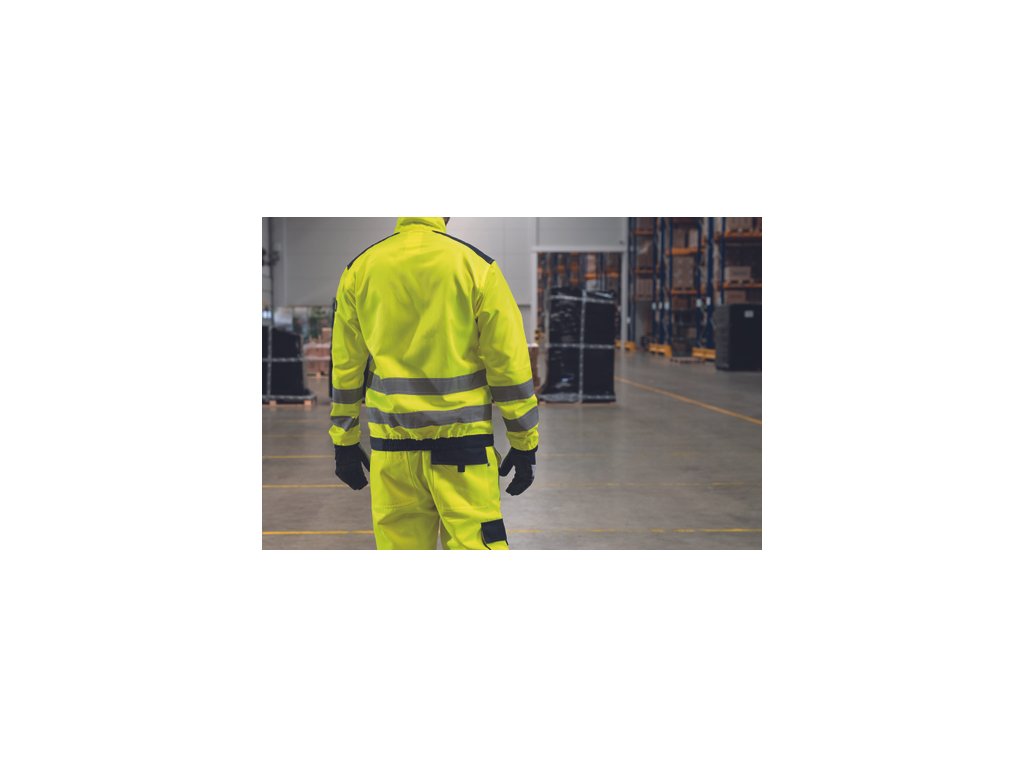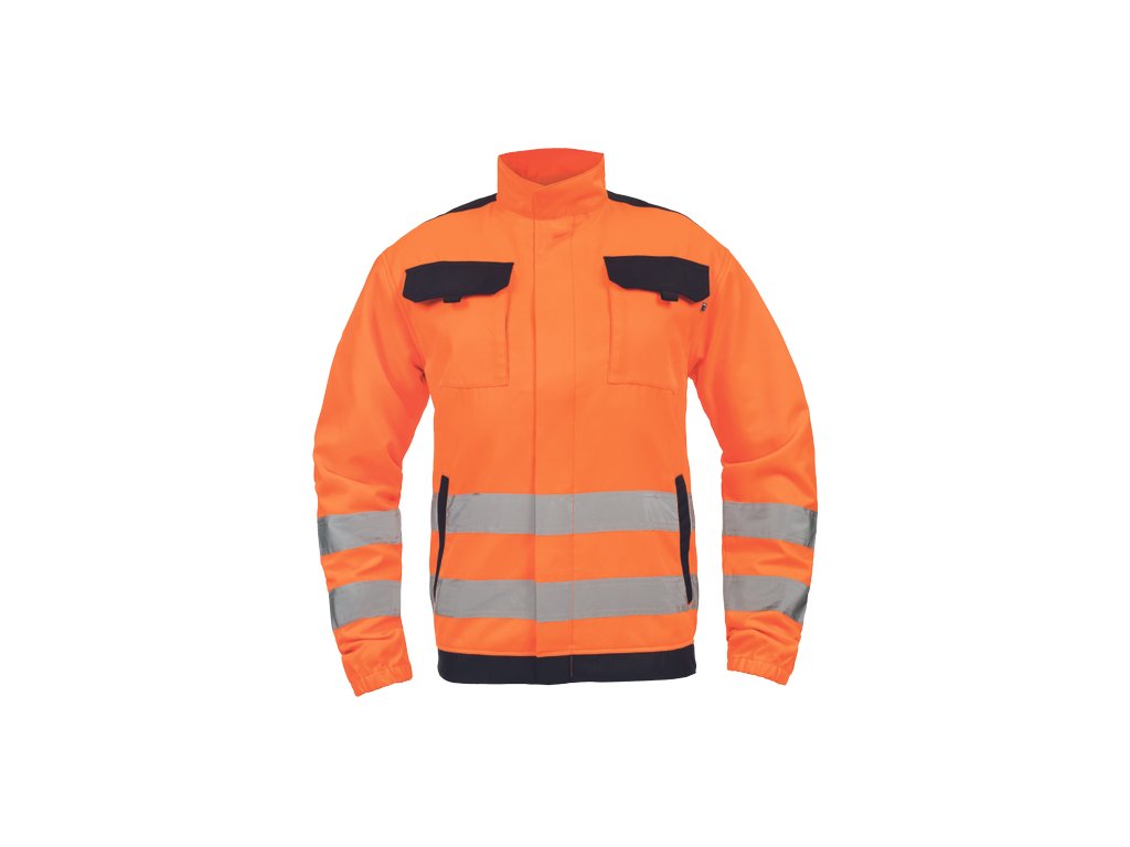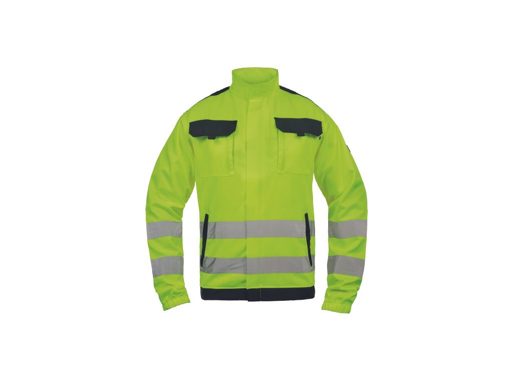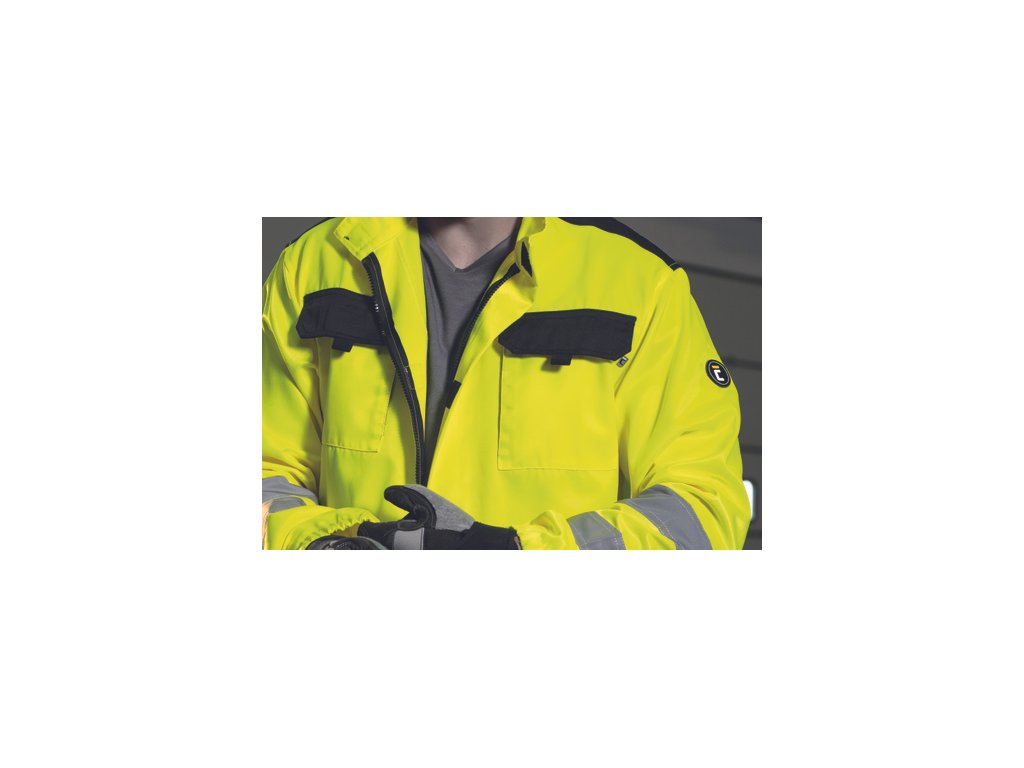 • unisex HI-VIS pracovní bunda se zapínáním na zip krytým légou • 2 boční kapsy • 2 náprsní kapsy s klopou na suchý zip • 2 šité 5 cm široké reflexní pruhy přes boky a spodní rukávy • zesílení namáhaných částí ramen • pružné manžety rukávů a spodní obvod v pase