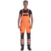 • pánské HI-VIS pracovní laclové kalhoty s elastickým pasem • 2 přední kapsy • 1 stehenní kapsa • 1 velká náprsní kapsa se zapínáním na zip • 2 zadní kapsy se zapínáním na suchý zip • 2 šité 7,5 cm široké reflexní pruhy na spodních částech nohavic • zesílená oblast kolen • nastavitelná délka nohavic