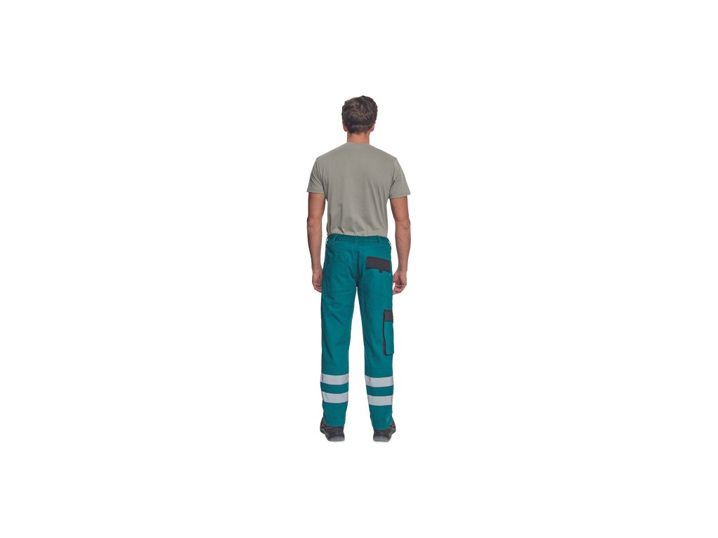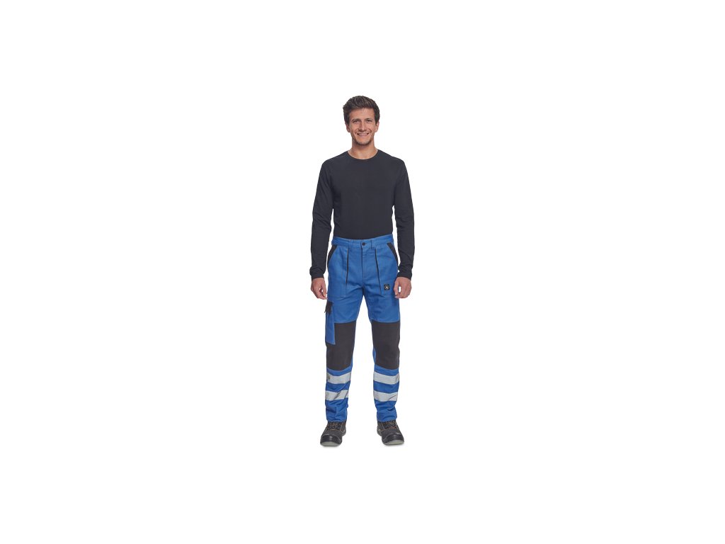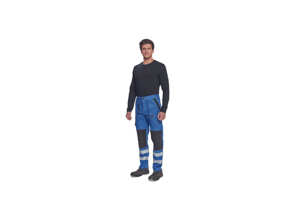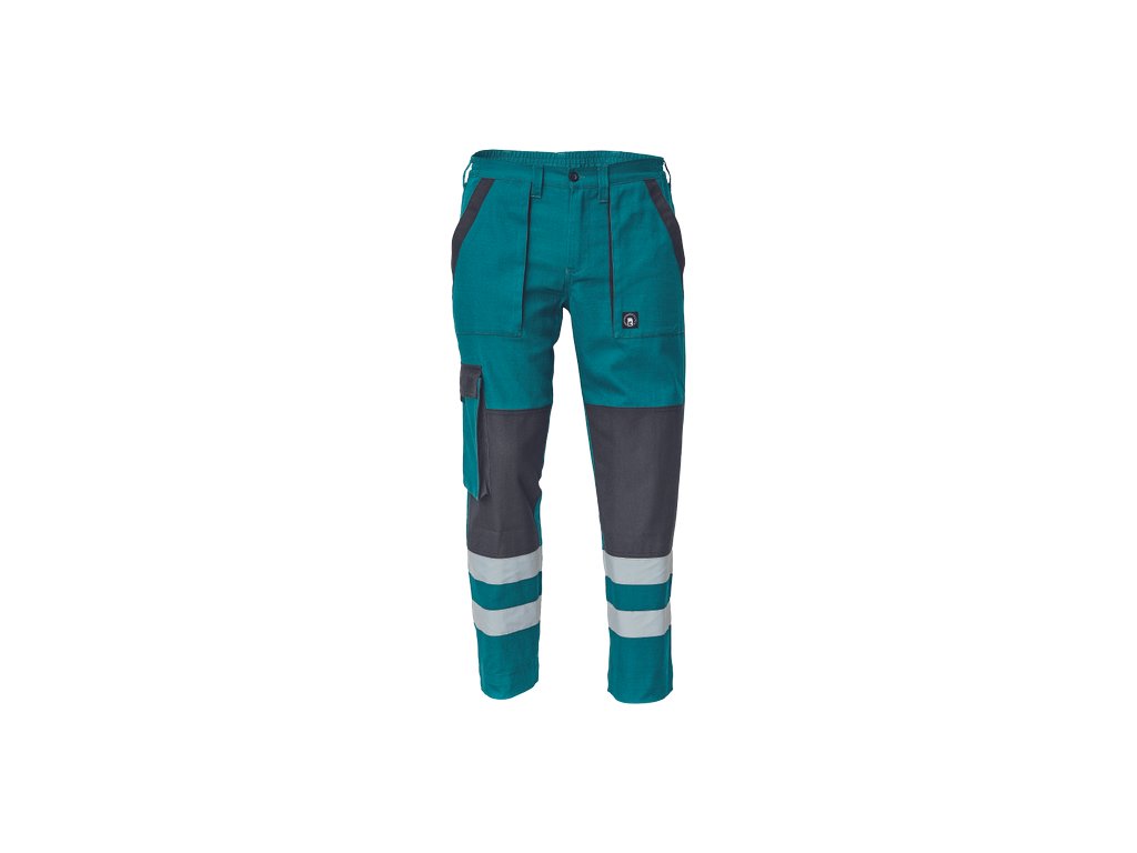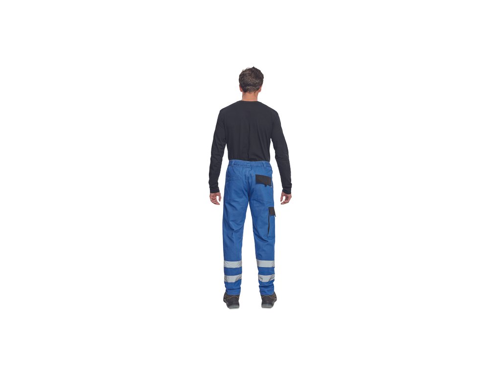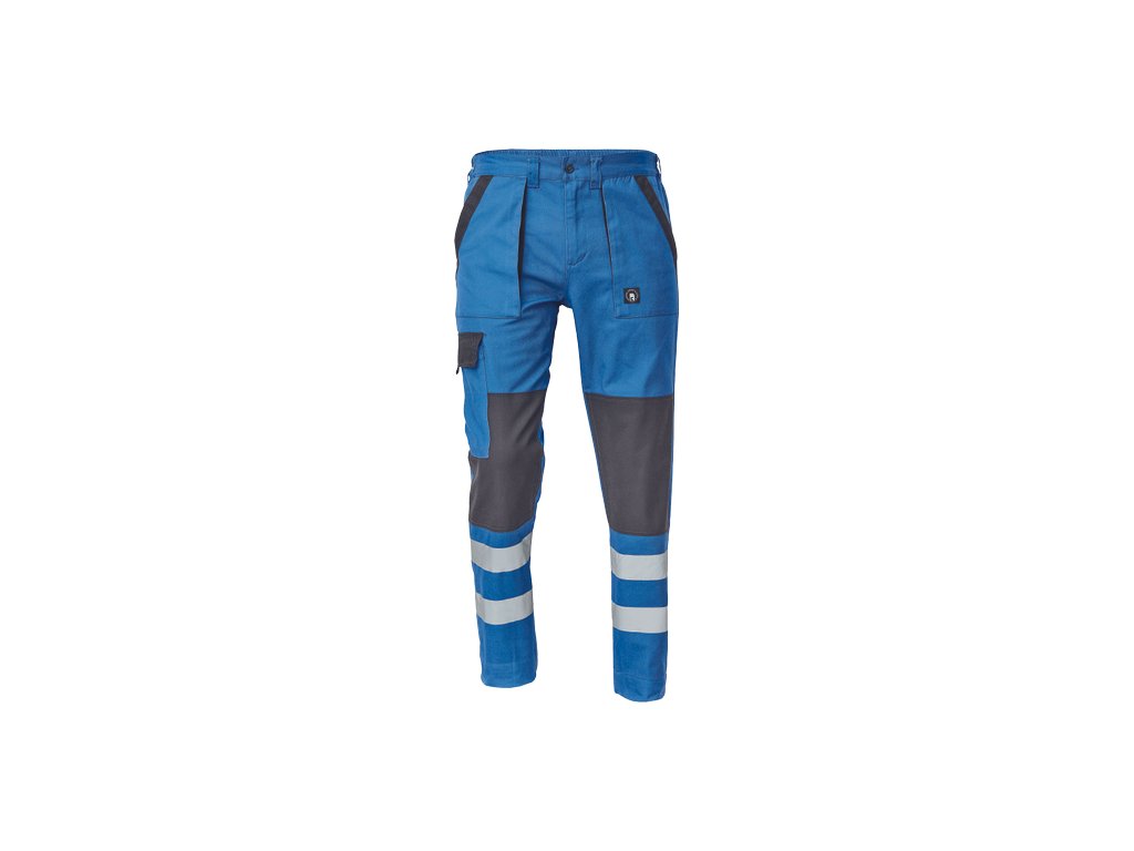 • pánské pracovní kalhoty s elastickým pasem • 2 přední kapsy • 1 stehenní kapsa • 2 zadní kapsy • reflexní pruhy na spodní části nohavic • zesílená oblast kolen • nastavitelná délka nohavic