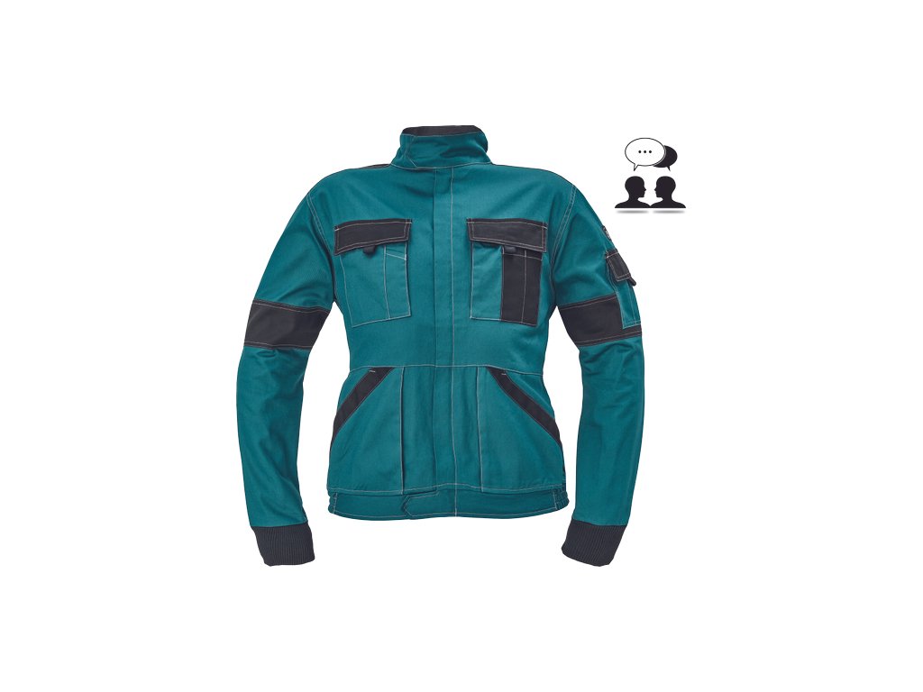 • dámská lehká pracovní bunda se zapínáním na zip krytým légou • 2 přední kapsy• 2 náprsní kapsy s klopou • 1 malá kapsa na levém rukávu • zesílení namáhaných míst loktů a ramen • pružné manžety rukávů a spodní obvod v pase