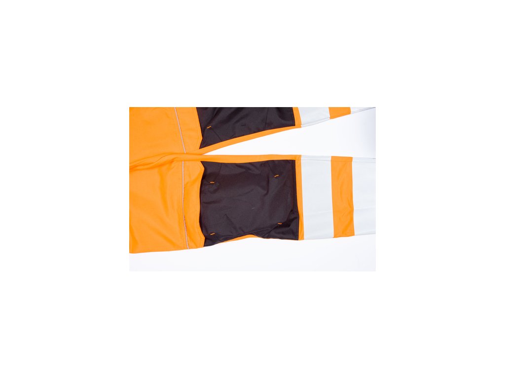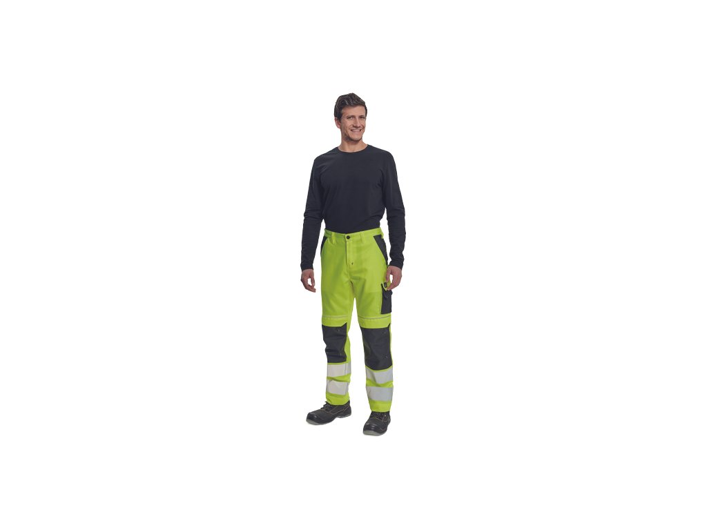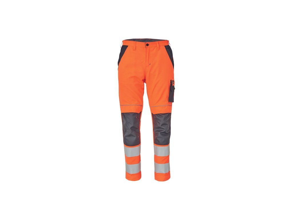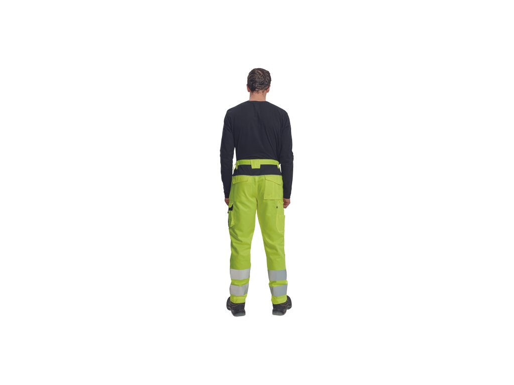 • pánské HI-VIS pracovní kalhoty s elastickým pasem • 2 přední kapsy • 1 levá zdvojená stehenní kapsa • 2 zadní kapsy • 2 menší zadní kapsičky na pravém stehnu • dvojice tištěných 7.5 cm reflexních pruhů na spodní části nohavic, reflexní paspulky • Oxford 600D zesílení kolen s možností horního vkládání nákoleníků • možnost prodloužení nohavic